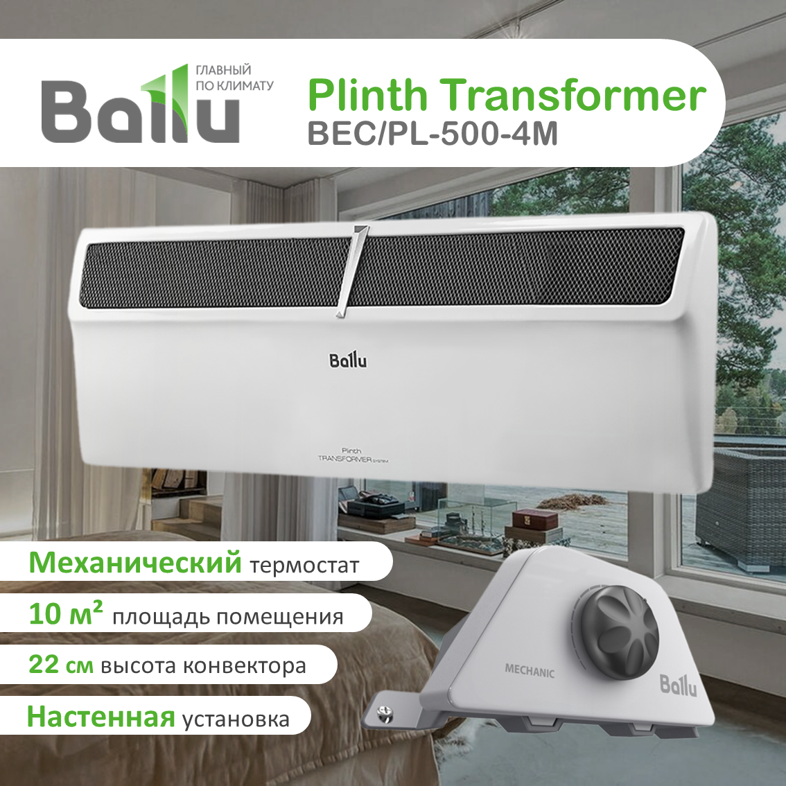 Плинтусный конвектор Ballu Plinth Transformer BEC/PL-500-3M интересное: