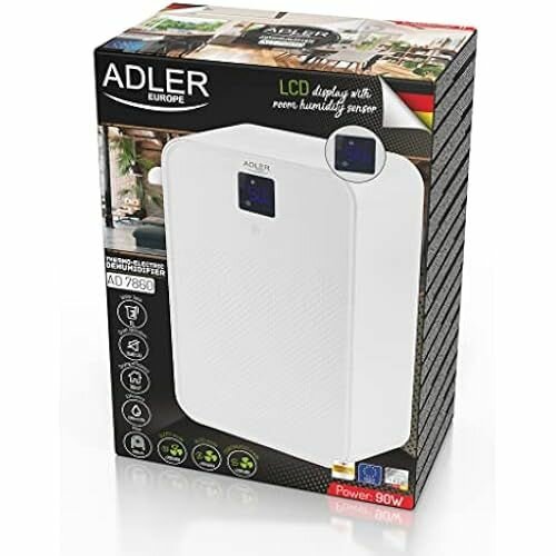 Осушитель ADLER EUROPE AD 7860, тихая работа, очень эффективный, светодиодный дисплей, производительность вентилятора: 40 м3/ч интересное:
