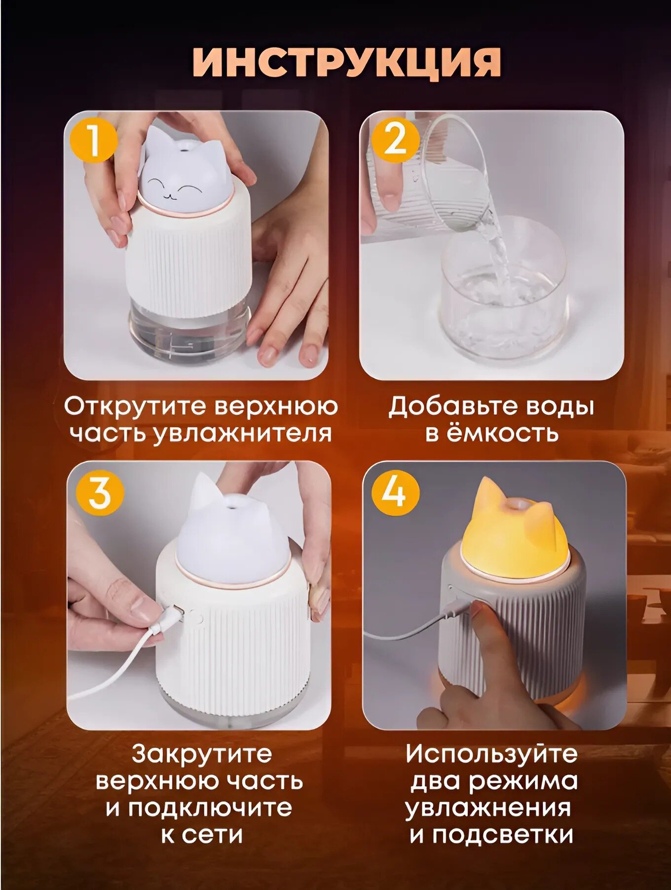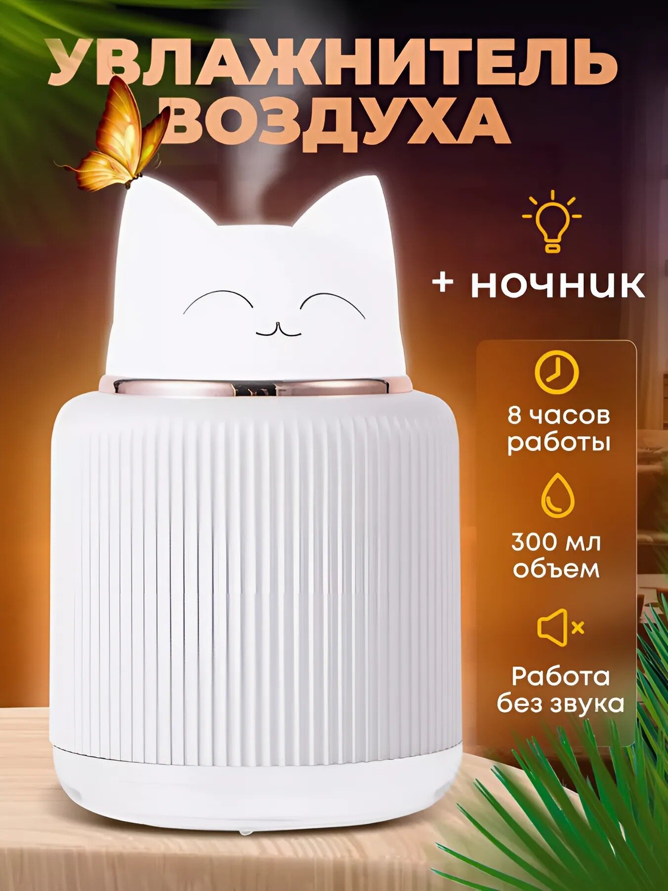 Настольный увлажнитель-аромадиффузор с подсветкой "Котик" белый интересное: