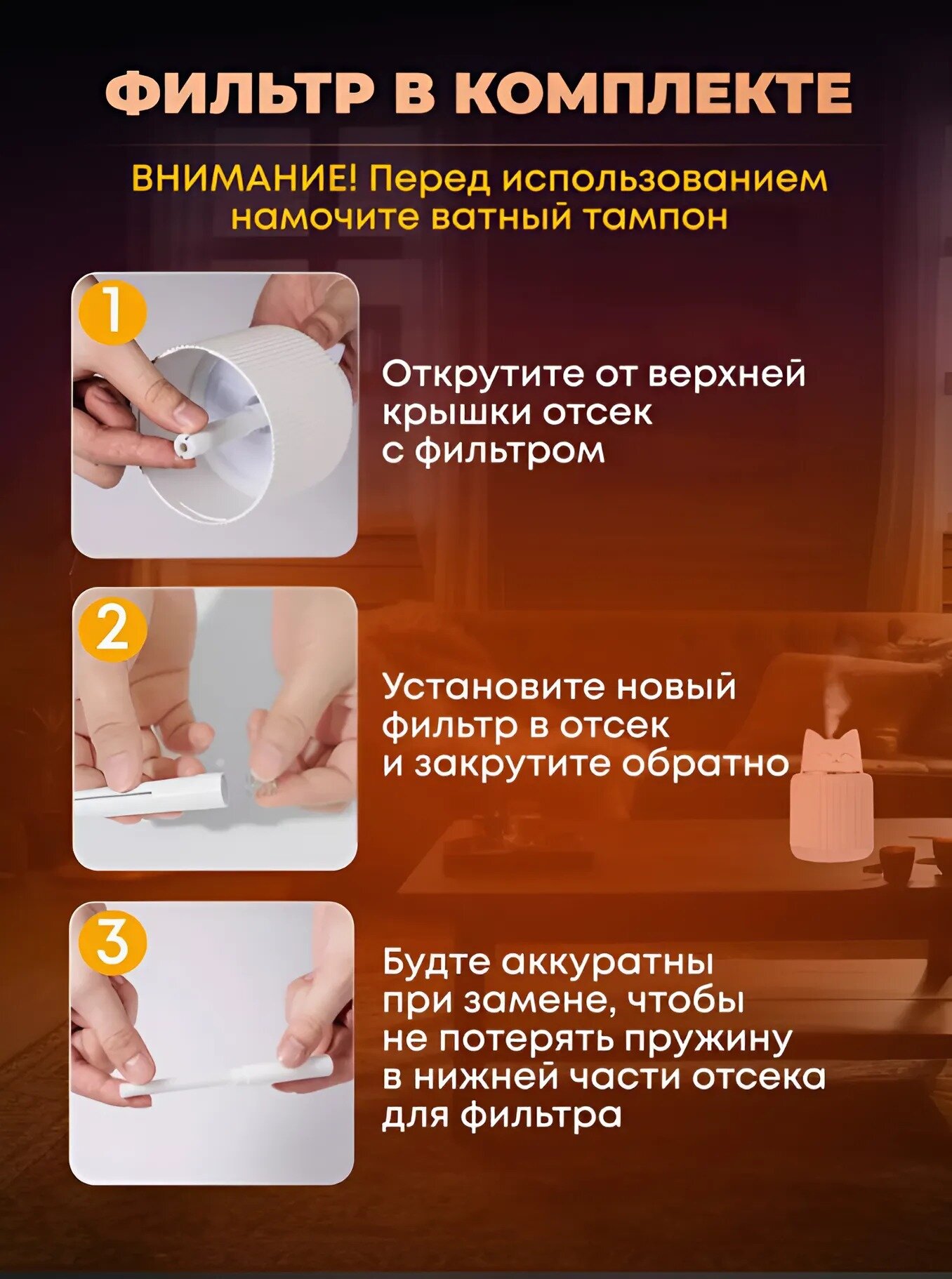Настольный увлажнитель-аромадиффузор с подсветкой "Котик" розовый интересное: