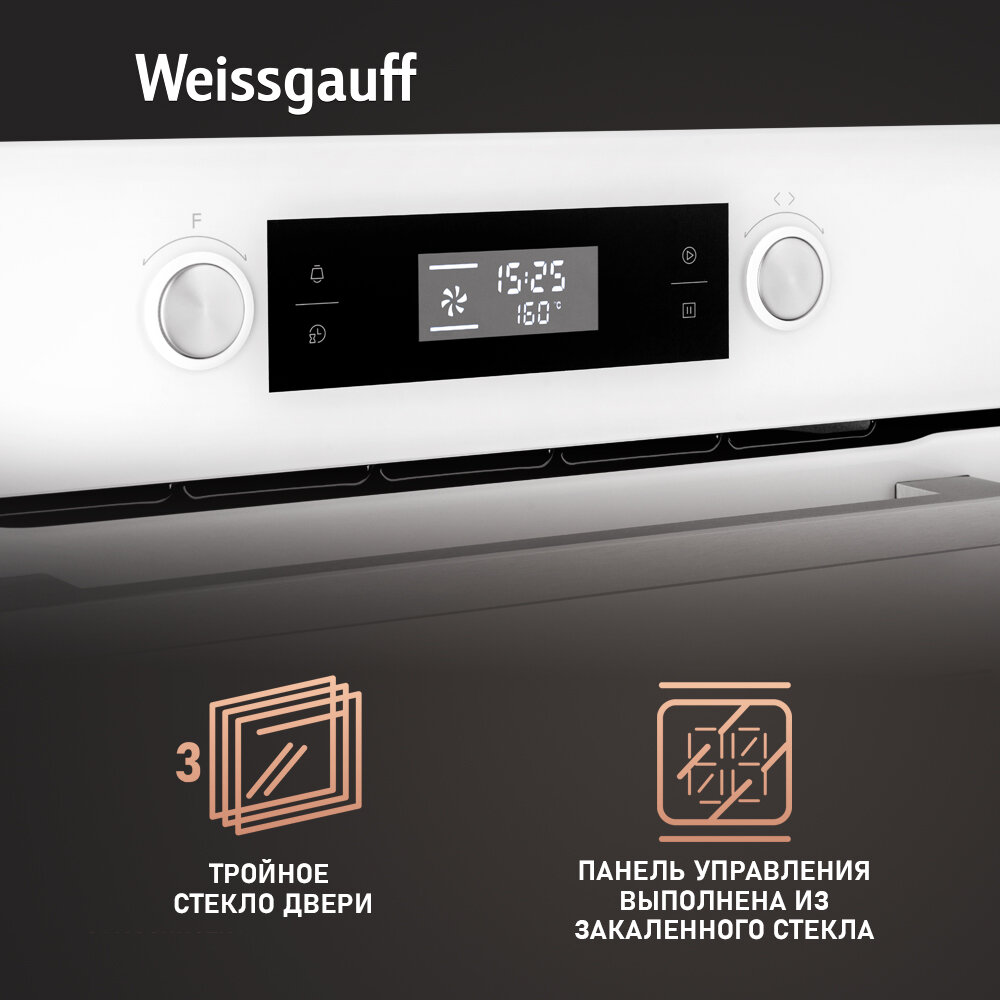 Электрический духовой шкаф Weissgauff EOM 691 PDW Steam Clean, объем XXL 70 литров