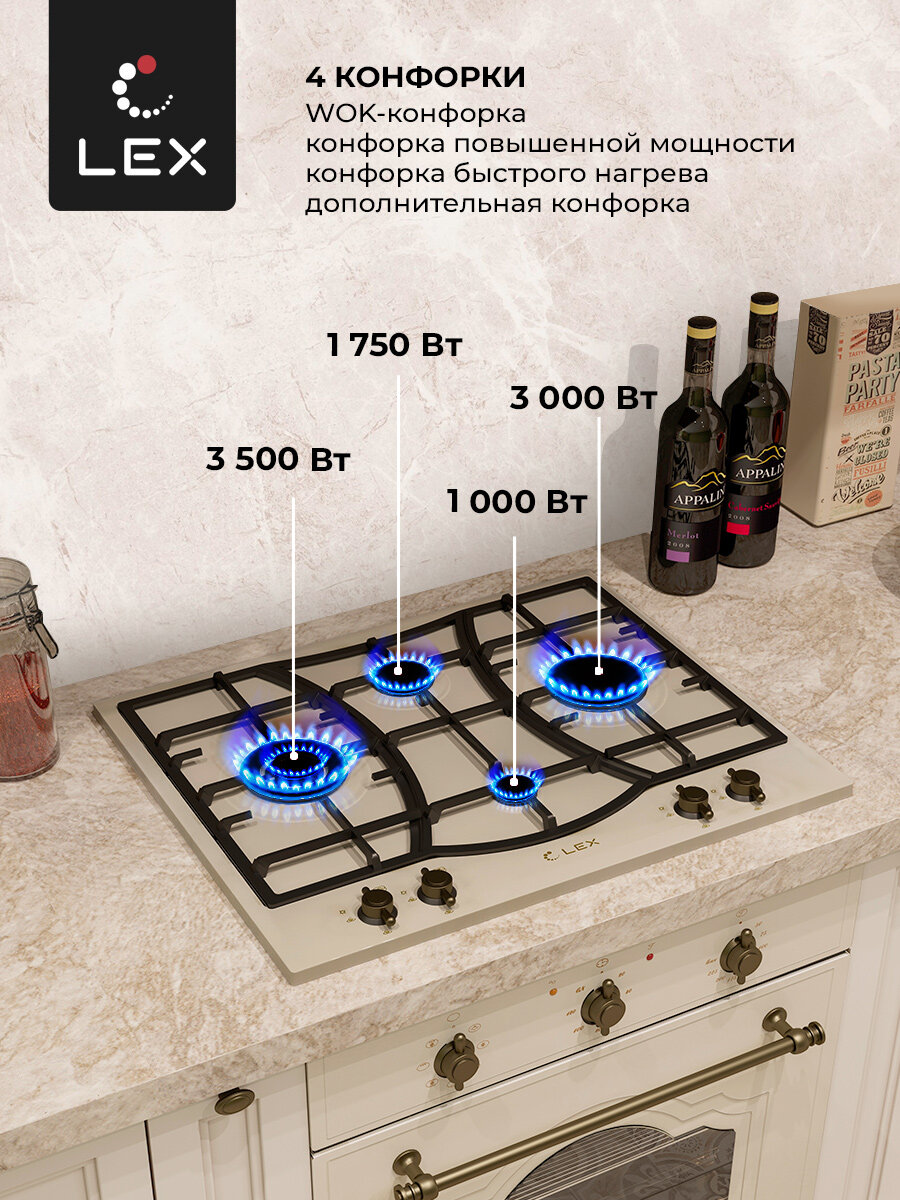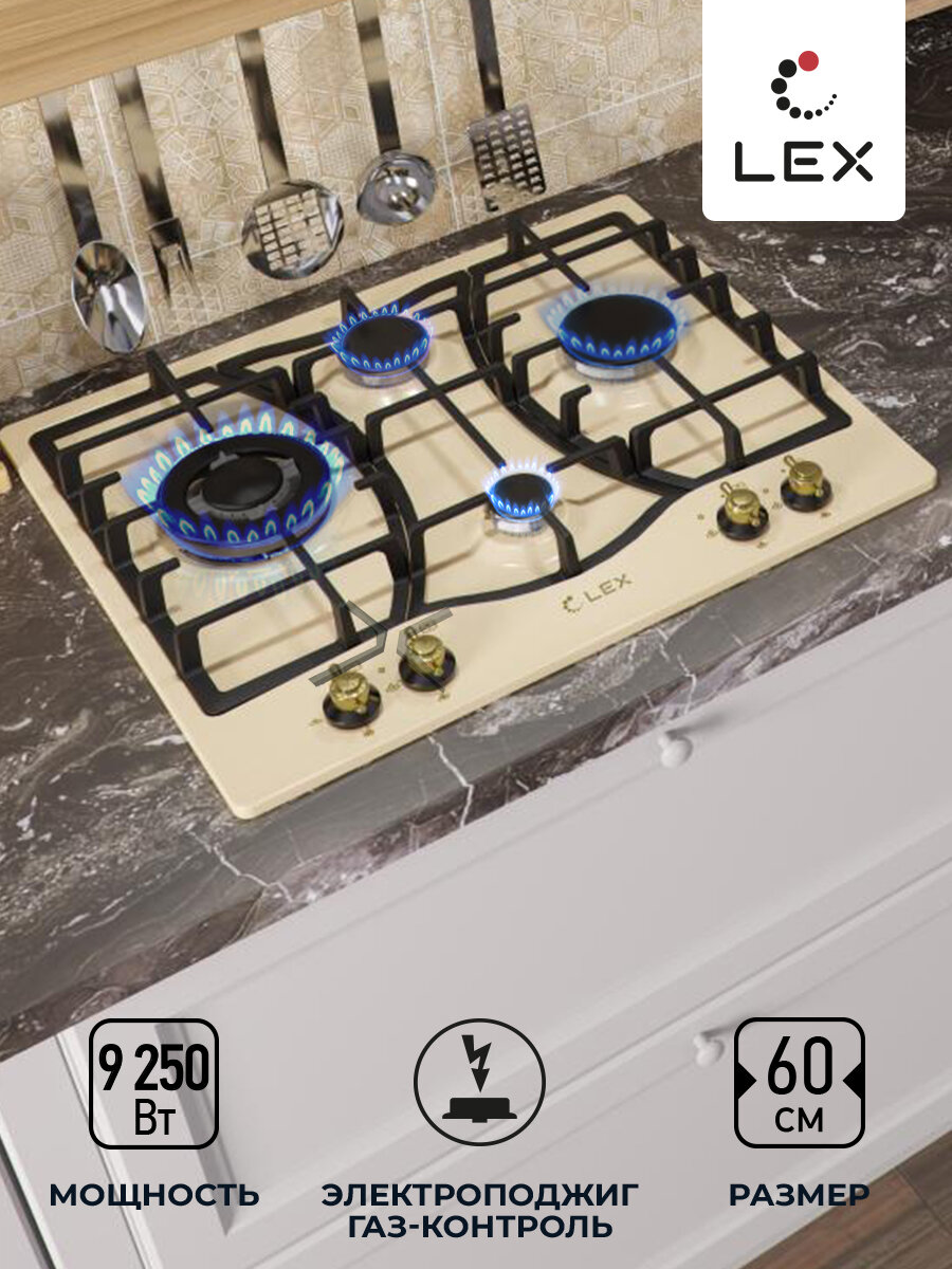 Газовая варочная панель LEX GVE 643 C IV, 4 конфорки, электроподжиг интересное: