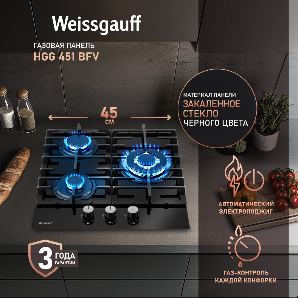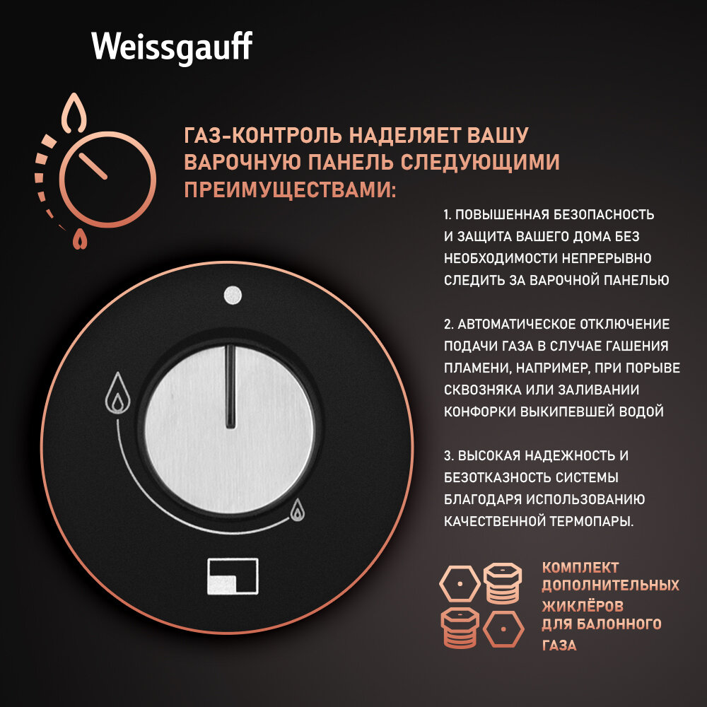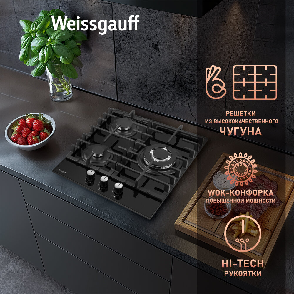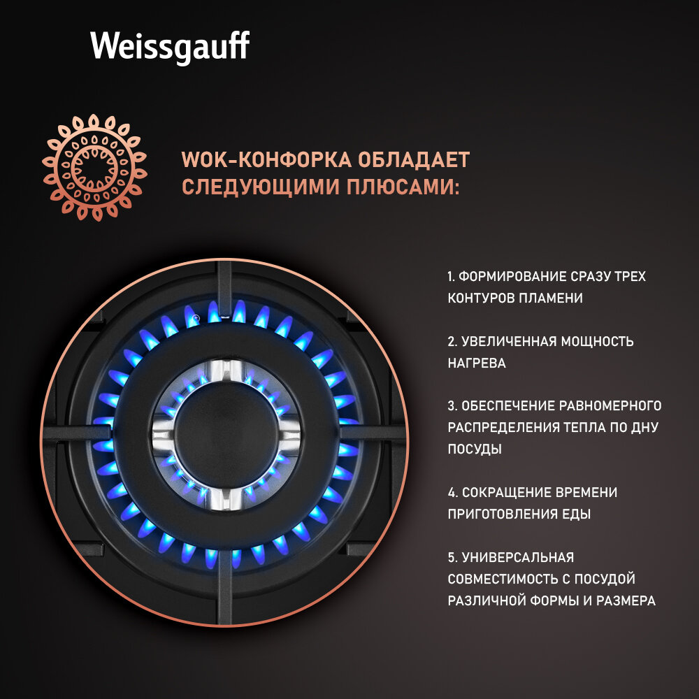 Варочная панель Weissgauff HGG 451 BFV WOK-конфорка, 3 года гарантии, автоматический электроподжиг, Рукоятки Hi-Tech, газ-контроль интересное: