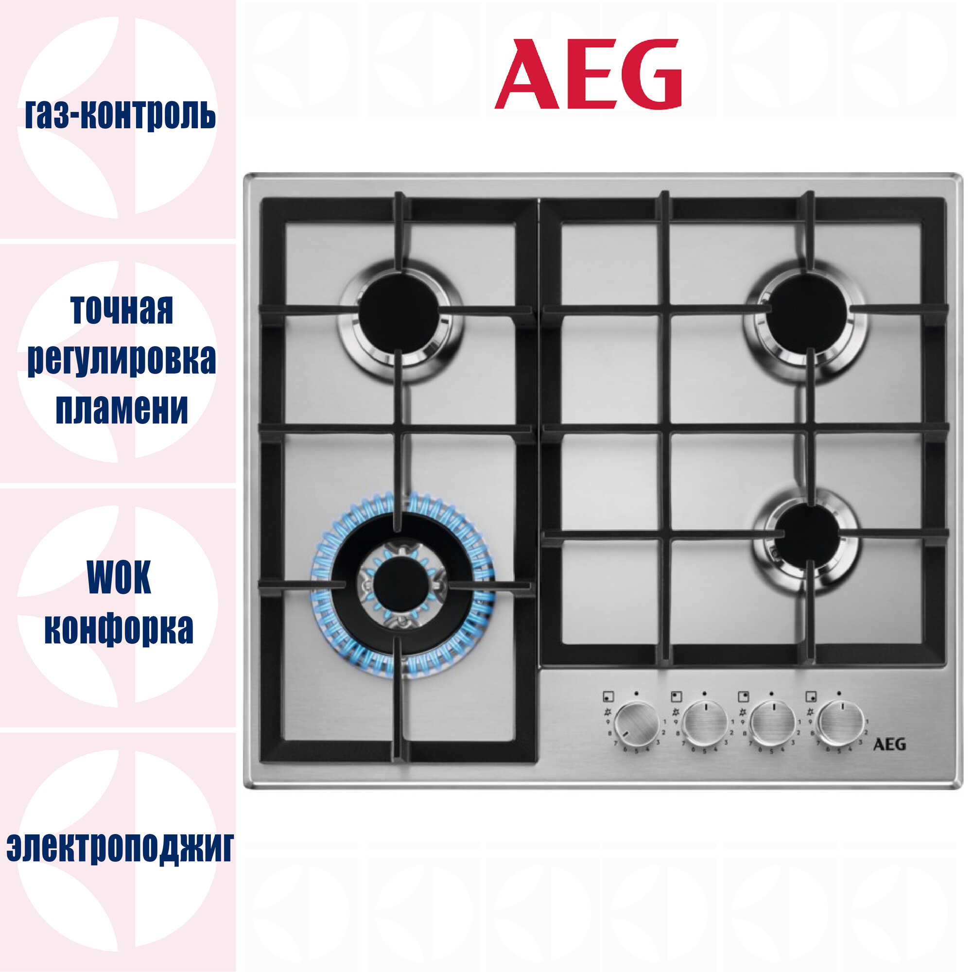 Газовая варочная поверхность AEG HGB64420SM нержавеющая сталь интересное: