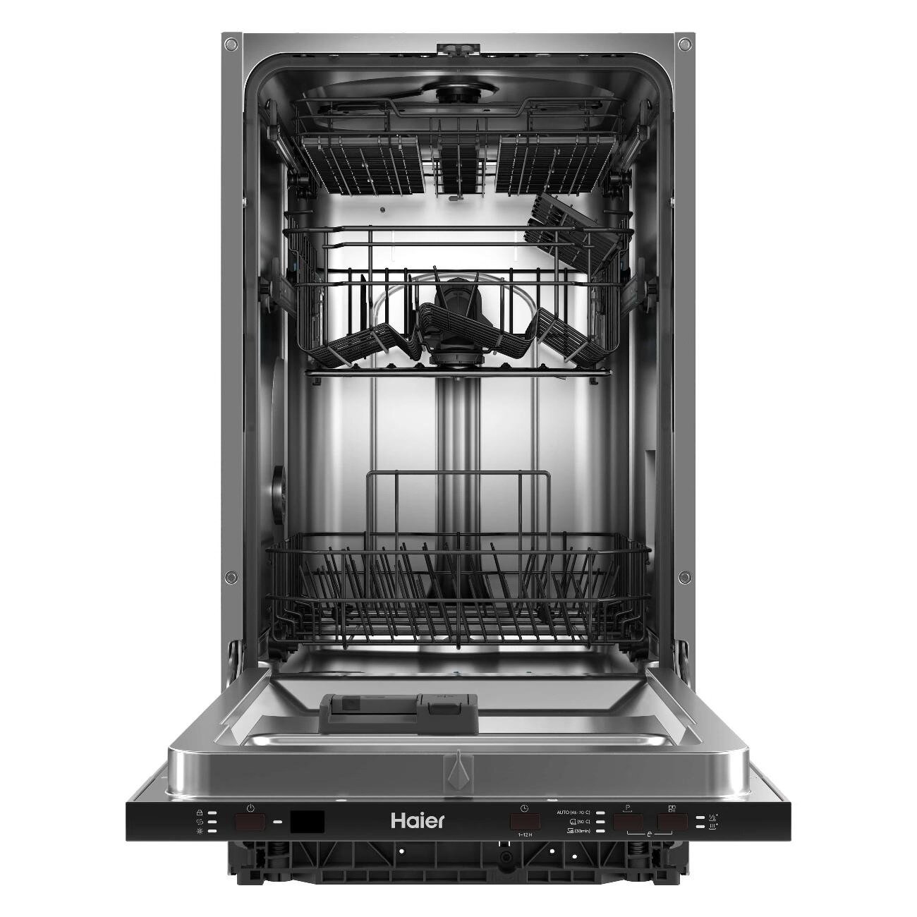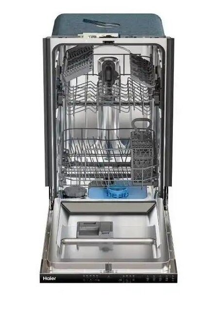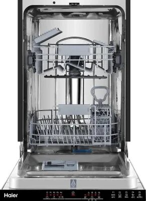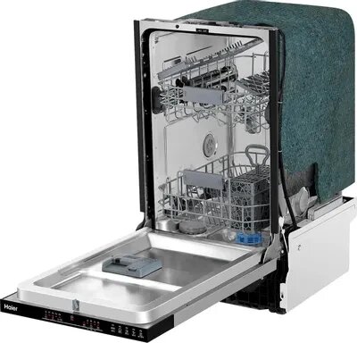 Посудомоечная машина Haier HDWE10-394RU, встраиваемая, ширина 45 см, вместительность 10 комплектов, 3 корзины, режим половинной загрузки и автопрограмма, дополнительная сушка и Aquastop, черный интересное: