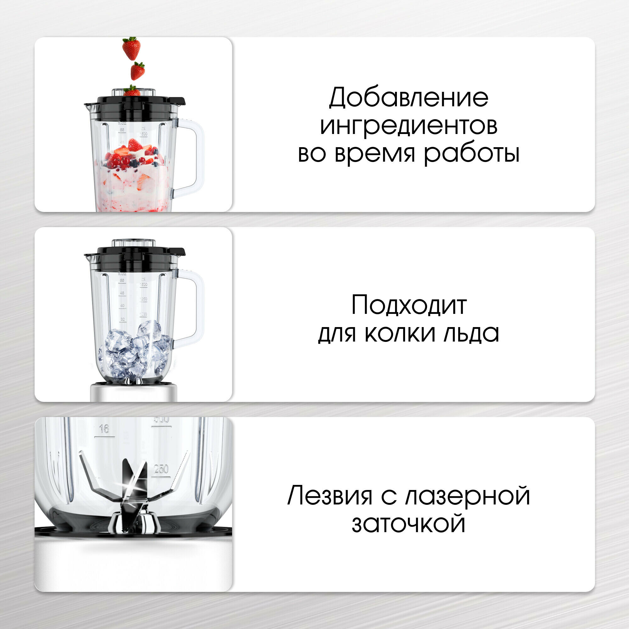 | Дополнительные функции | Защита от перегрева / защита от перегрузки / колка льда / плавная регулировка скорости |