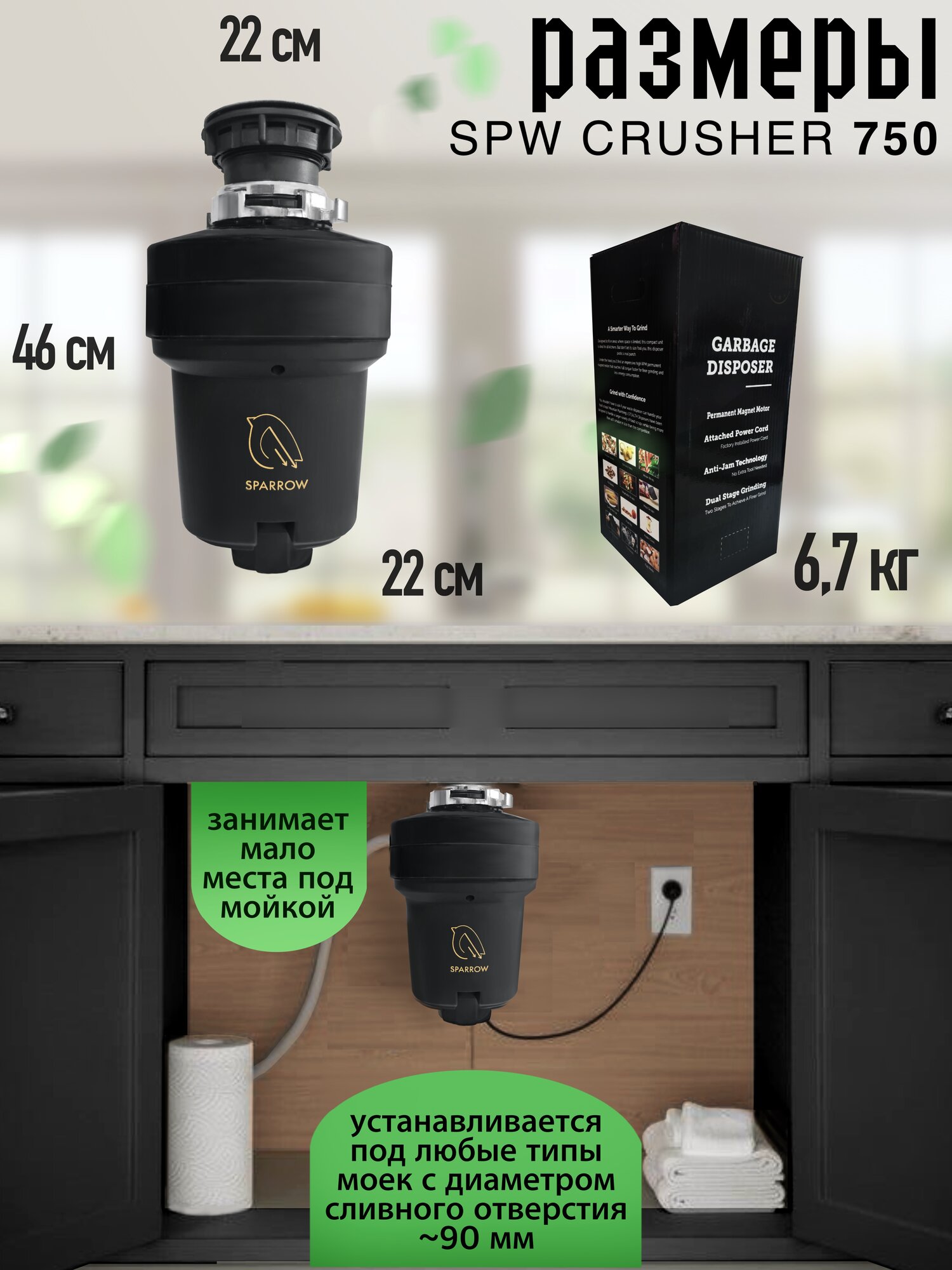 Измельчитель бытовых отходов Sparrow SPW Crusher 750 интересное:
