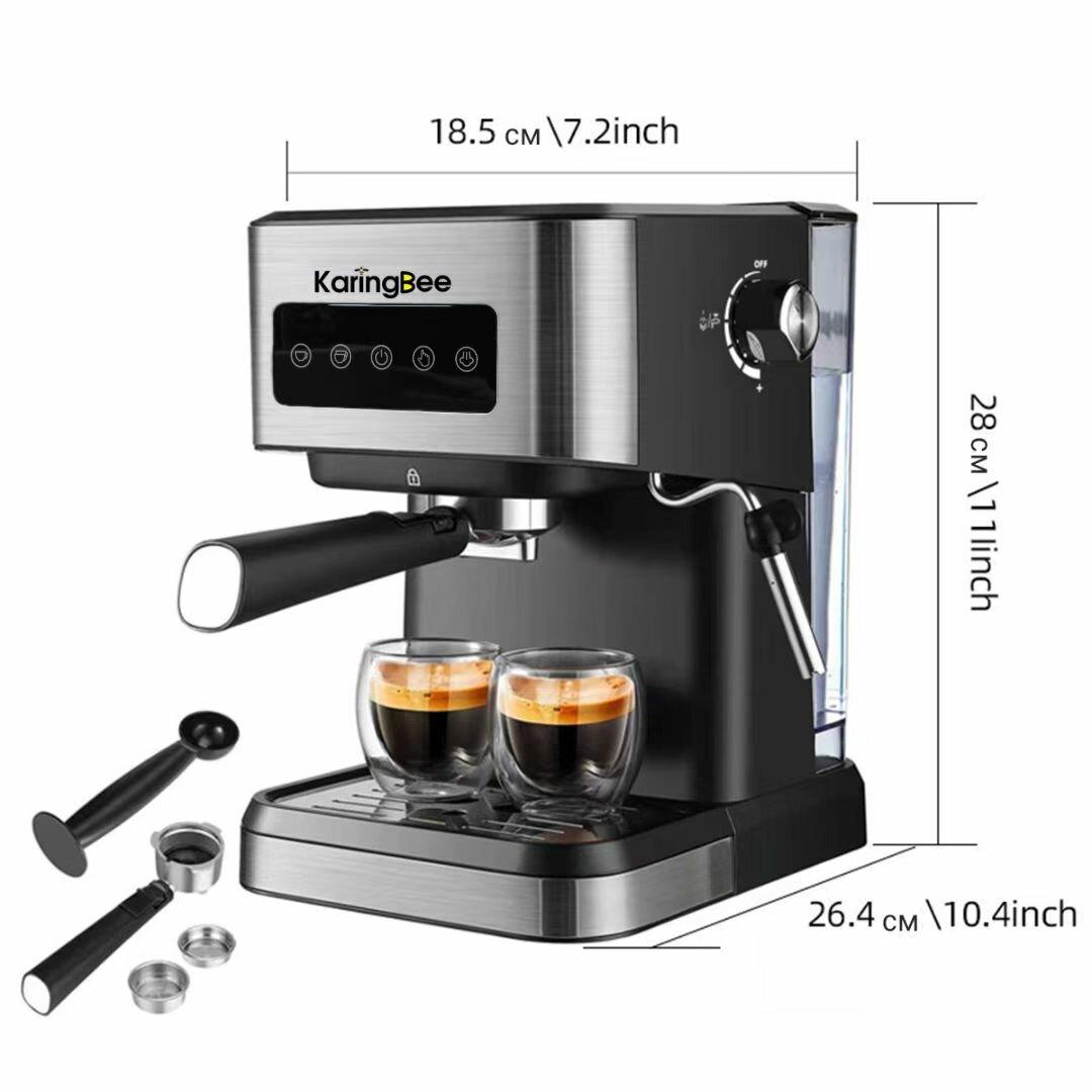 Рожковая кофемашина KaringBee CM3010 20 бар/мощность 1050 Вт/из нержавеющей стали/стабильная температура 92C,