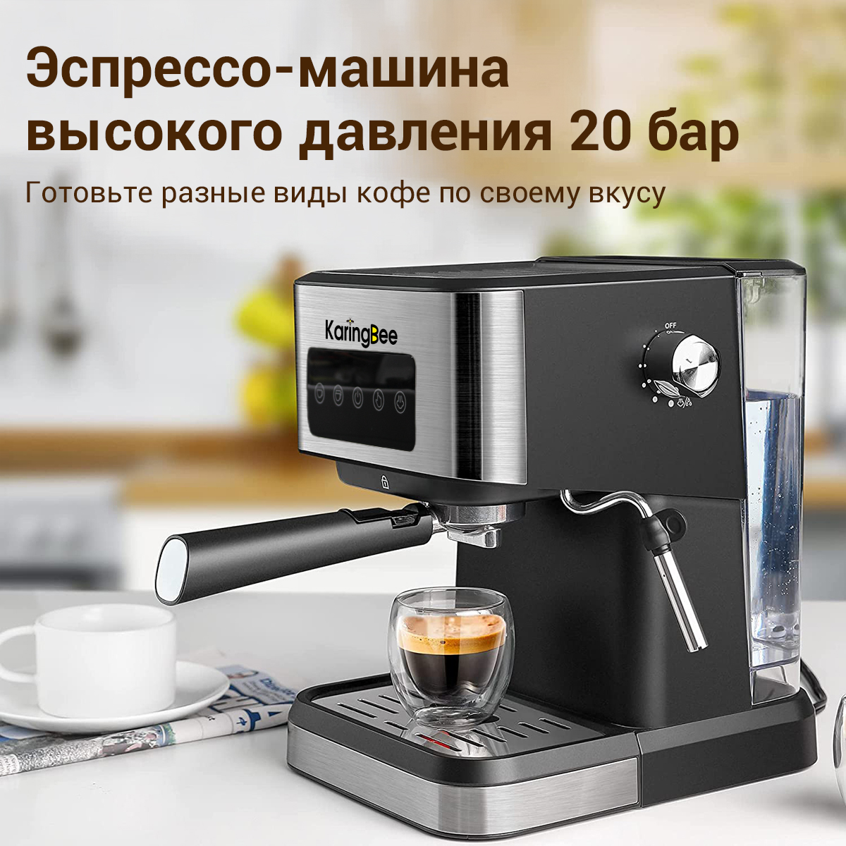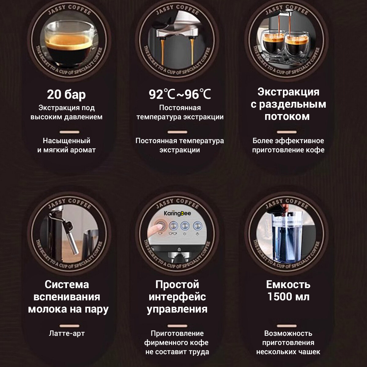 Рожковая кофемашина KaringBee CM3000 20 бар/мощность 1050 Вт/из нержавеющей стали/стабильная температура 92C интересное: