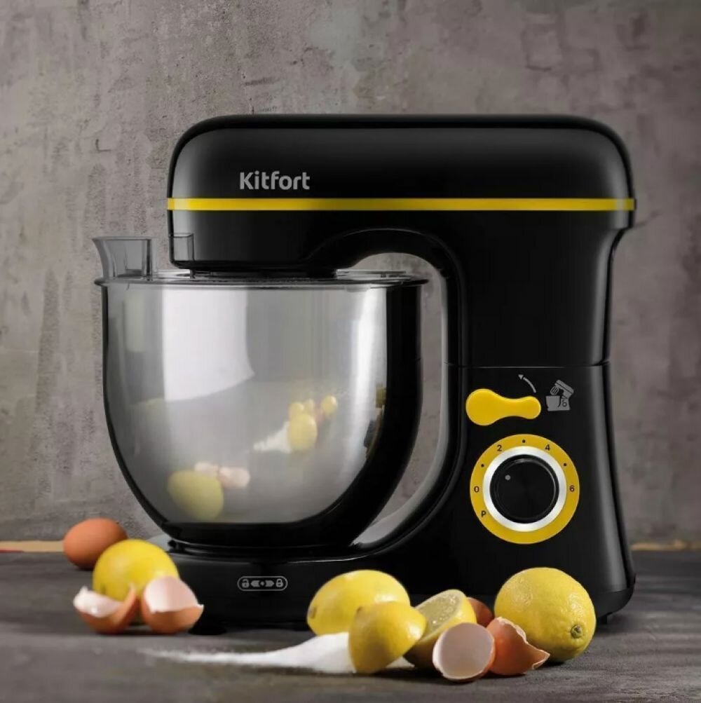 Планетарный миксер Kitfort КТ-3421 черный, 3 насадки, 1400 Вт, интересное: