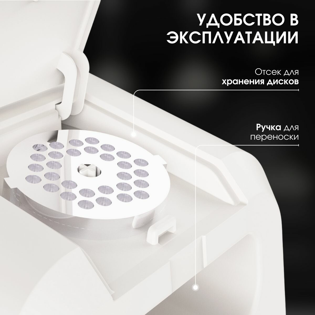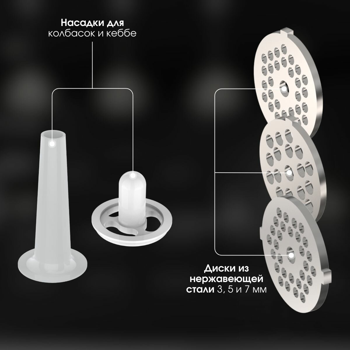 | Насадки | диск для фарша / насадка для кеббе / насадка для приготовления колбас |