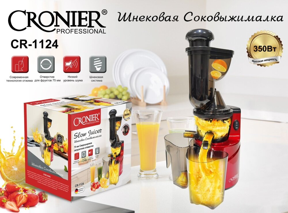 Купить Соковыжималка CRONIER "CR-1124" шнековая 350 Вт / Для фруктов, загрузочное место 75 мм