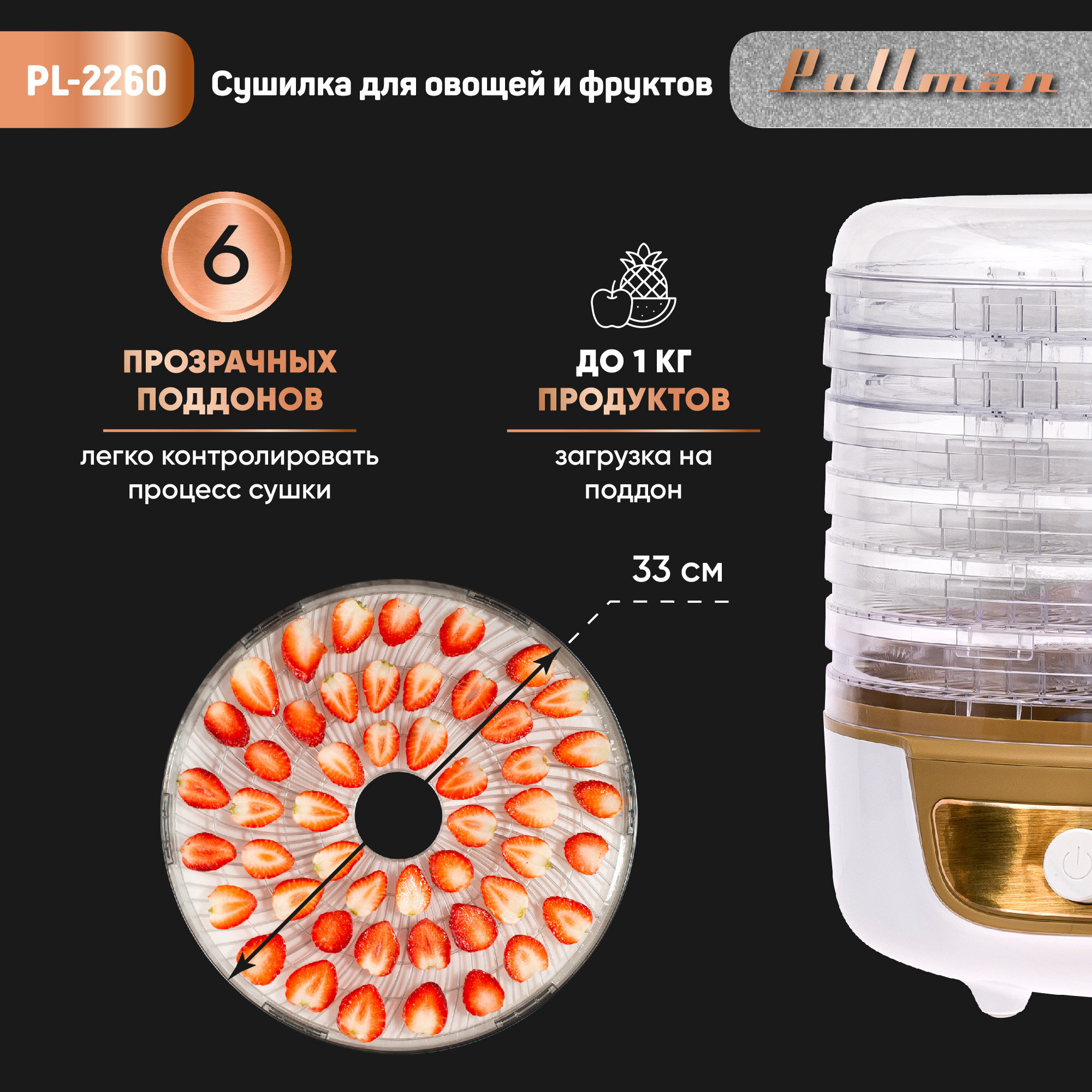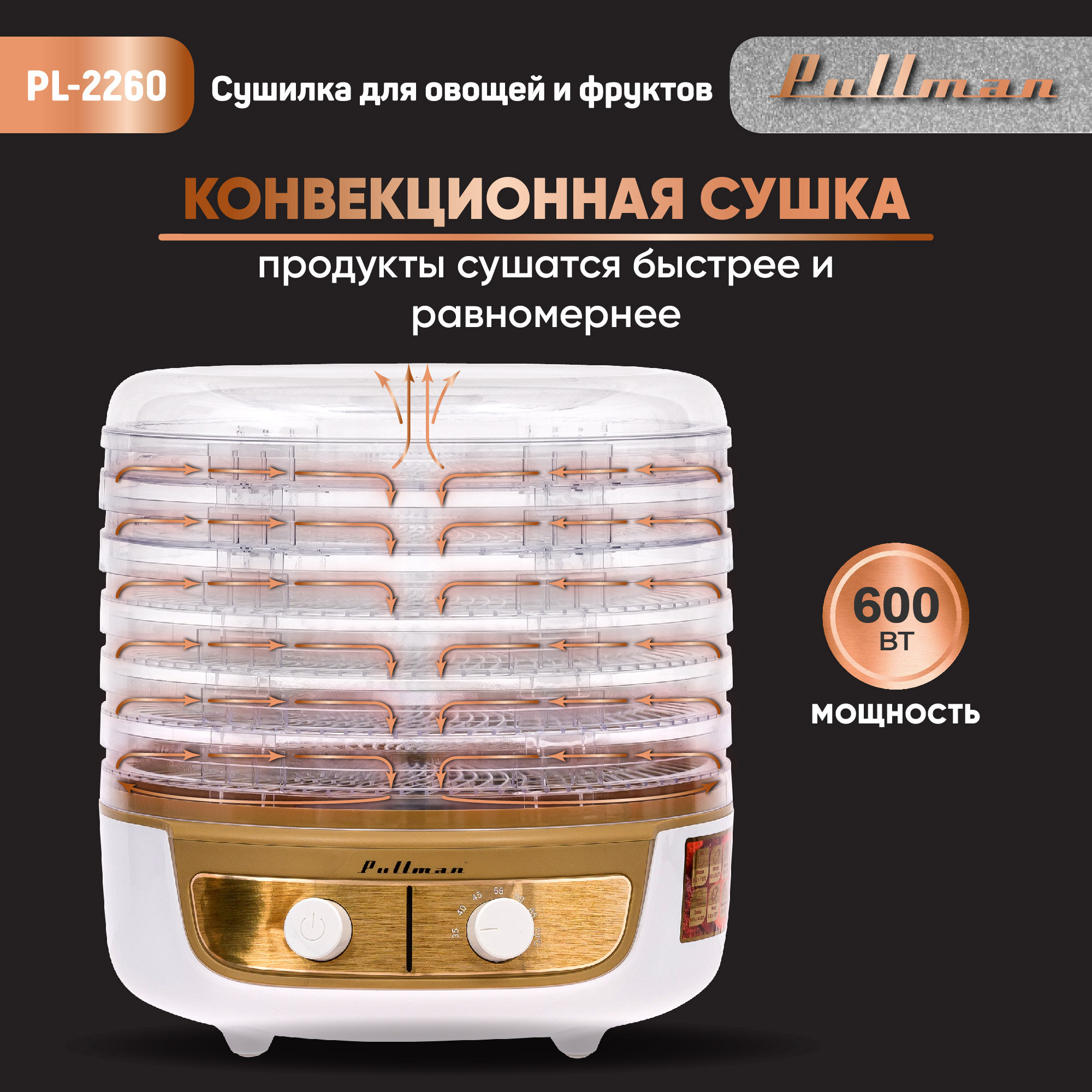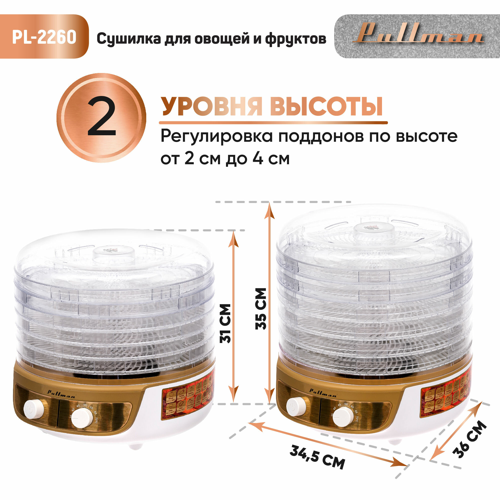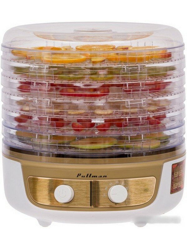 Сушилка для овощей и фруктов Pullman PL-2260 бело-золотистый интересное: