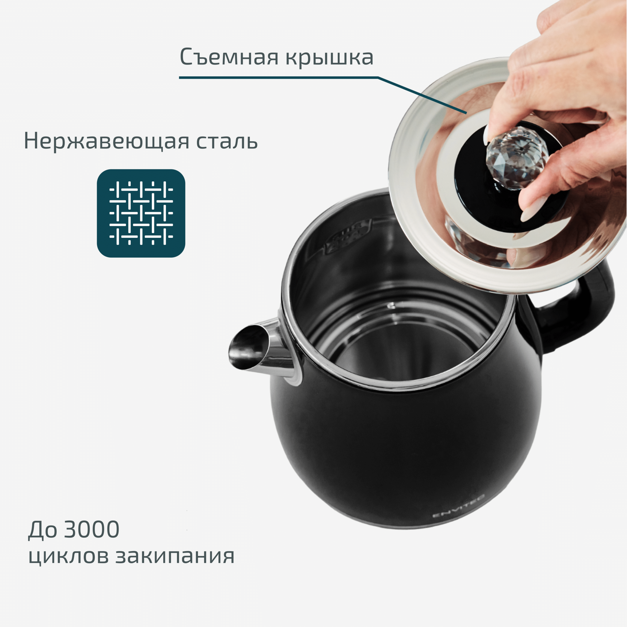 Электрический чайник Envitec Classic YD-1830 со съёмной крышкой, Чёрный 1,8 л.
