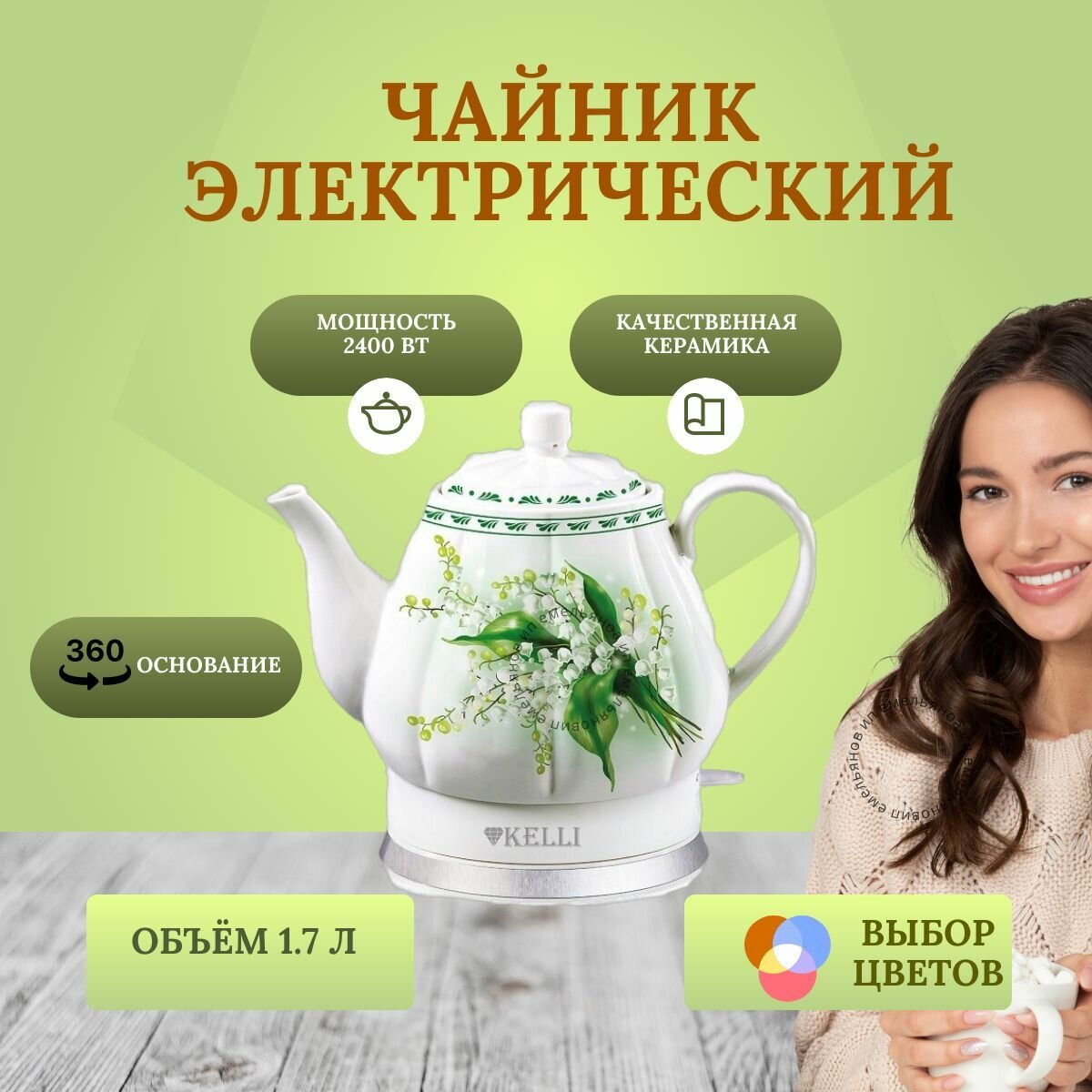 Чайник электрический KELLI KL-1340, керамический, объём 1.8 л