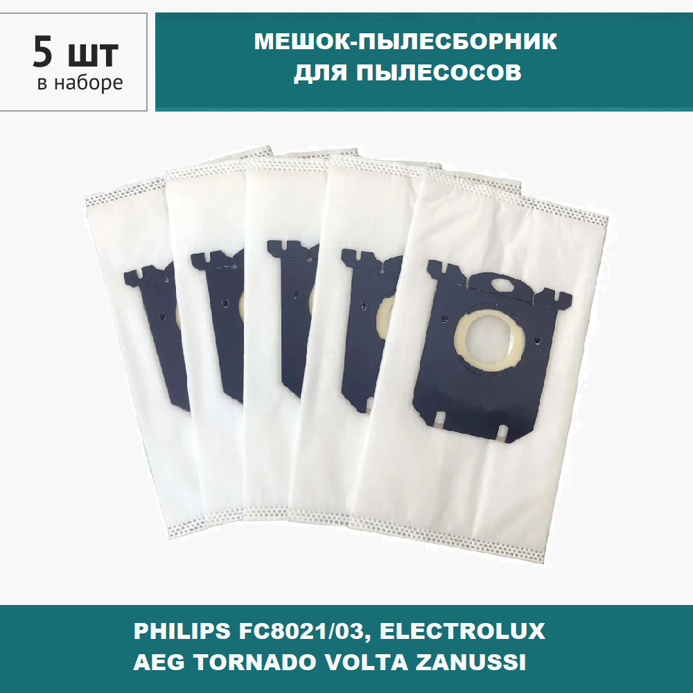 Мешок - пылесборник 5 шт. для пылесоса PHILIPS FC8021/03, ELECTROLUX AEG TORNADO VOLTA ZANUSSI, тип S-Bag