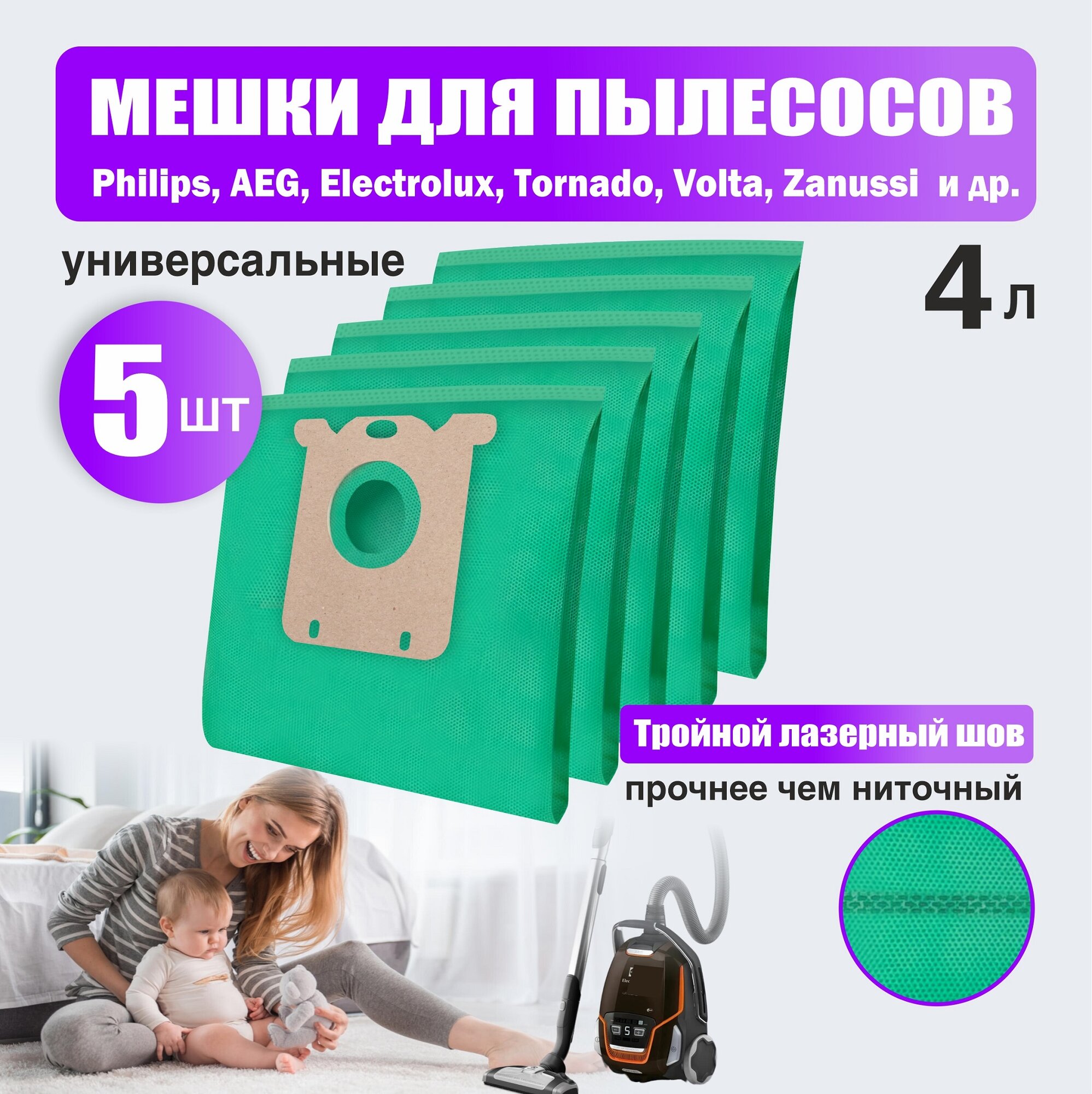 Пылесборник/ мешок для пылесоса Electrolux, Philips 5 мешков интересное: