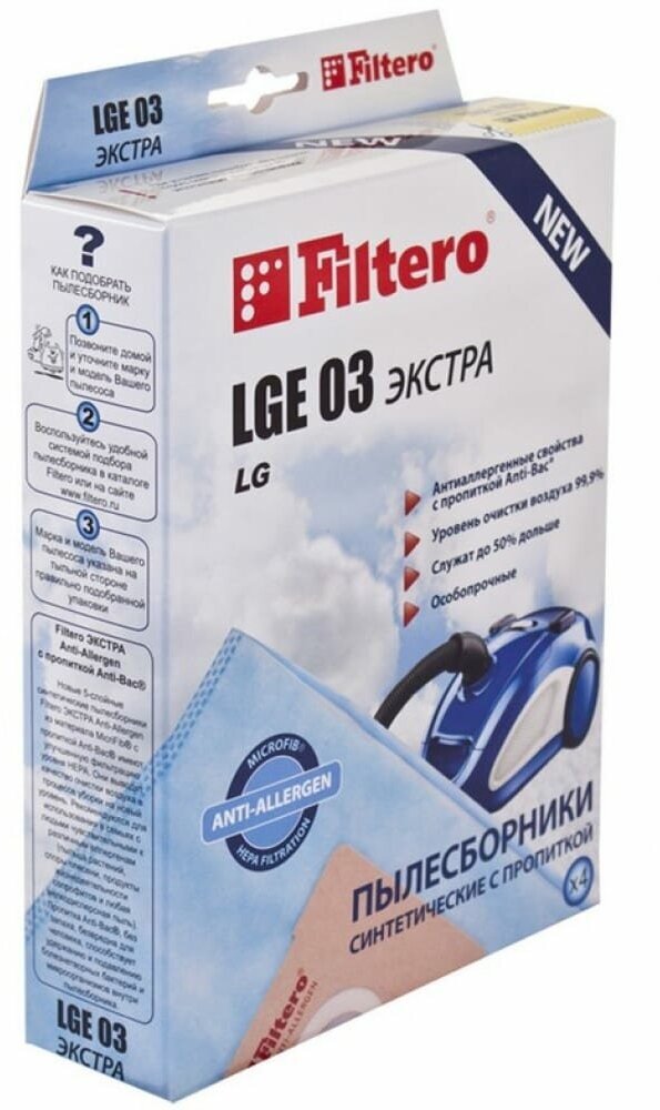 Мешки-пылесборники Filtero LGE 03 Экстра, для пылесосов LG, синтетические, 4 штуки