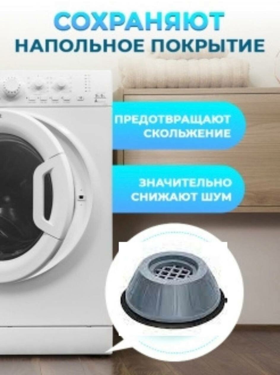 Антивибрационные универсальные подставки для стиральных машин и холодильников,4 штуки серые, круглые