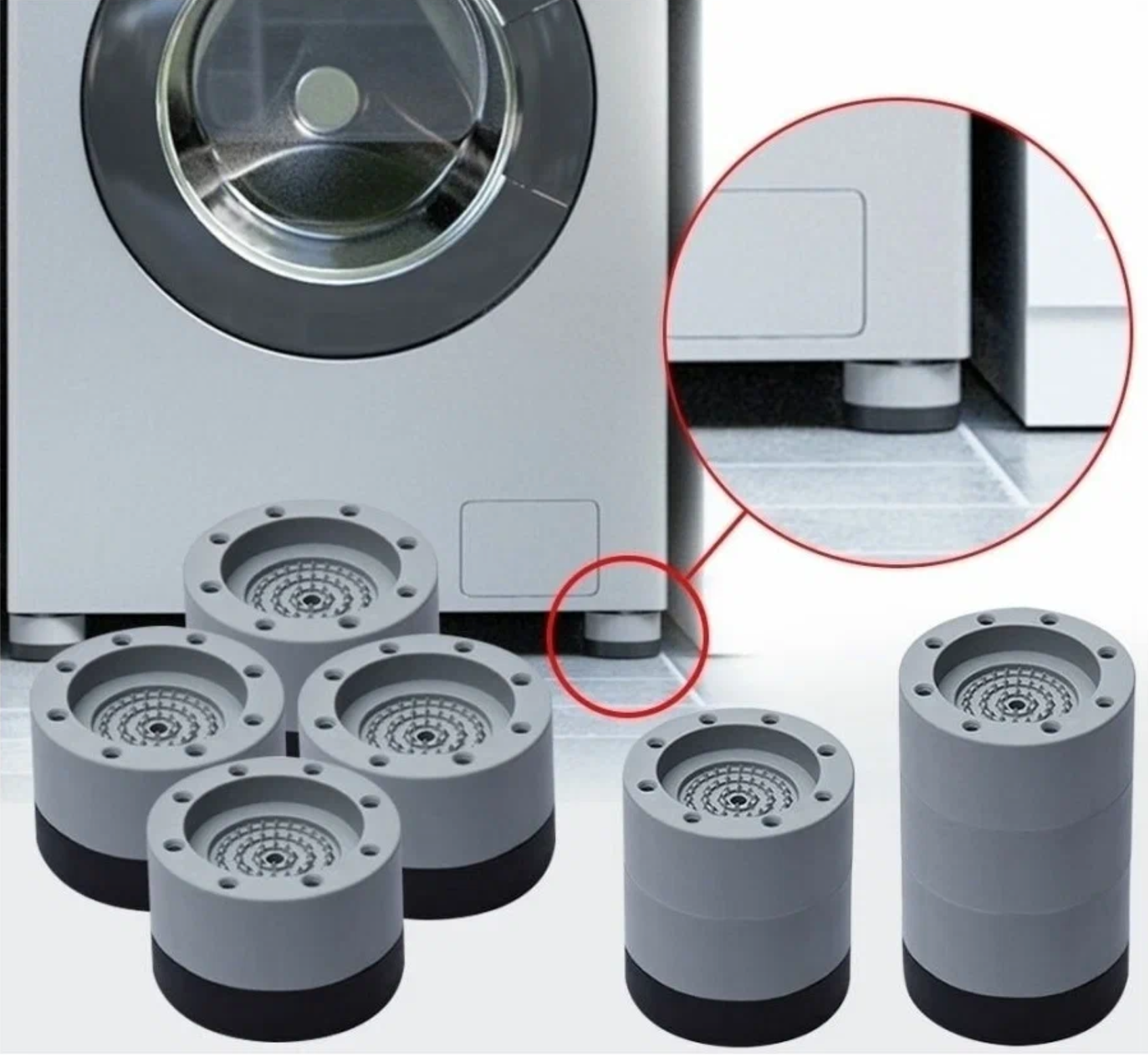 Антивибрационные универсальные подставки для стиральных машин и холодильников,4 штуки серые, круглые