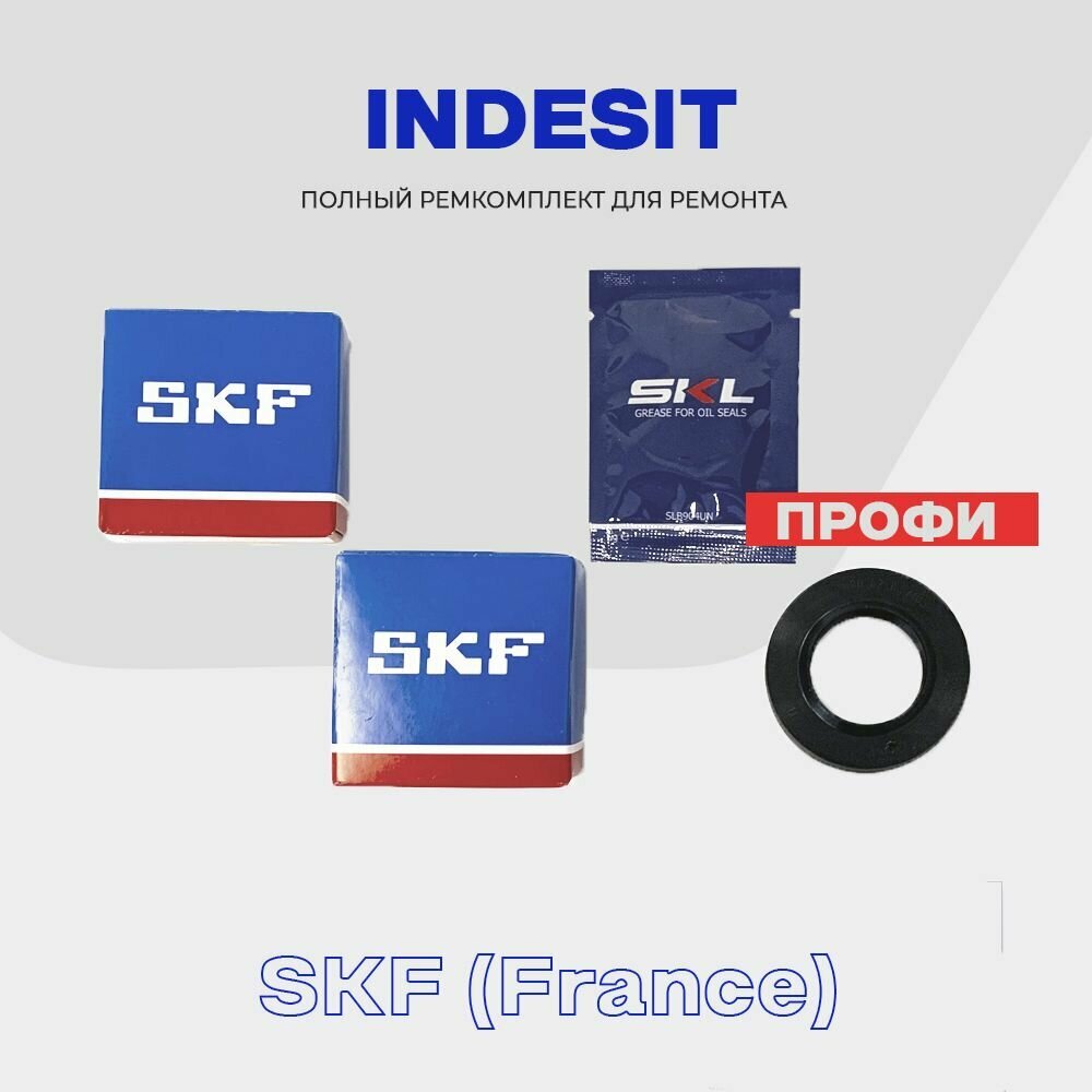 Ремкомплект бака для стиральной машины INDESIT "Профи" сальник 22х40х8/11,5, смазка, подшипники SKF: 6202ZZ, 6203ZZ (Франция) интересное: