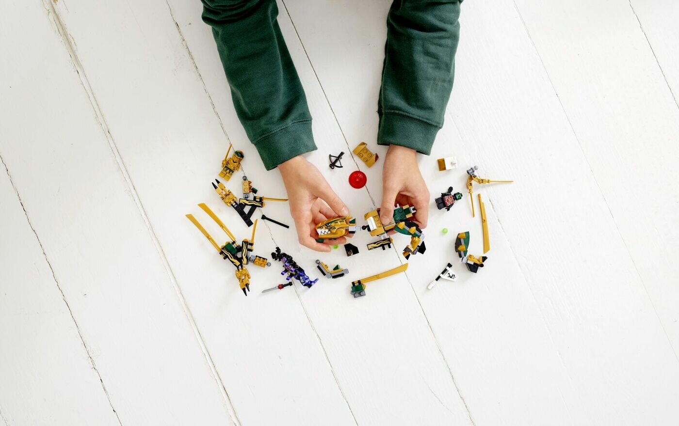 | Дополнительная информация | Фигурка Золотого Дракона оснащена седлом для минифигурок, открывающейся пастью со скрытым в ней шипомётом, а также подвижными крыльями, лапами и хвостом. Открой пасть дракона и выстрели из скрытого в ней шутера. В набор входит следующее оружие: золотая катана Золотого ниндзя Ллойда, копьё Оверлорда и арбалет Разведчика Каменной армии; Размеры модели: более 6 см в высоту, 24 см в длину и 26 см в ширину. |