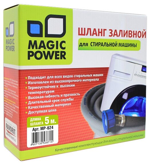 MAGIC POWER MP-624 шланг заливной сантехнический для стиральных машин 5 м (Аксессуары д/быт. тех-ки) интересное: