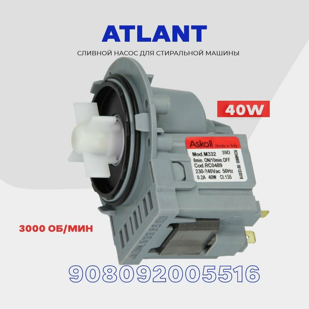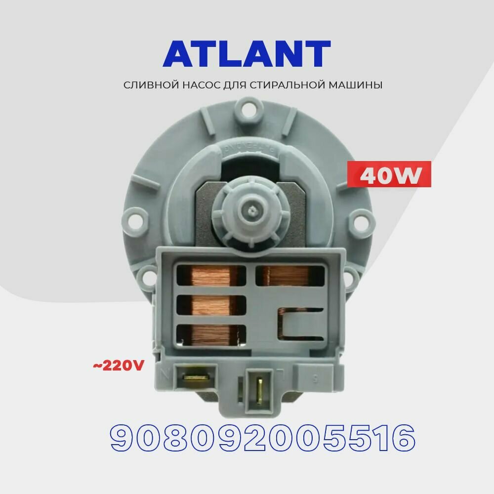 Купить Сливной насос для стиральной машины Atlant 908092005516 (908092000905) 220V * 40W / Помпа для Атлант 3 винта