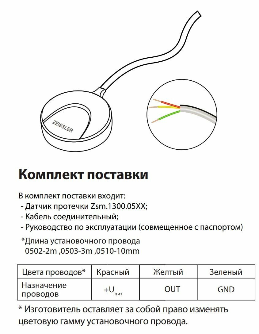 | Длина кабеля датчика | 2 м |