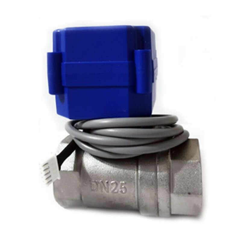 Купить Кран с сервоприводом из нержавеющей стали 1" (DN25) 5В для системы защиты от протечек воды Water Leakage Alarm для фильтра Родничок, дома или квартиры.