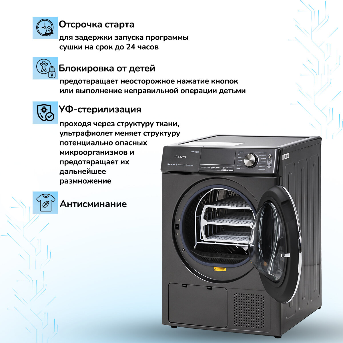 Сушильная машина MANYA DM1011SB загрузка 10кг, 14 программ, подсветка барабана интересное: