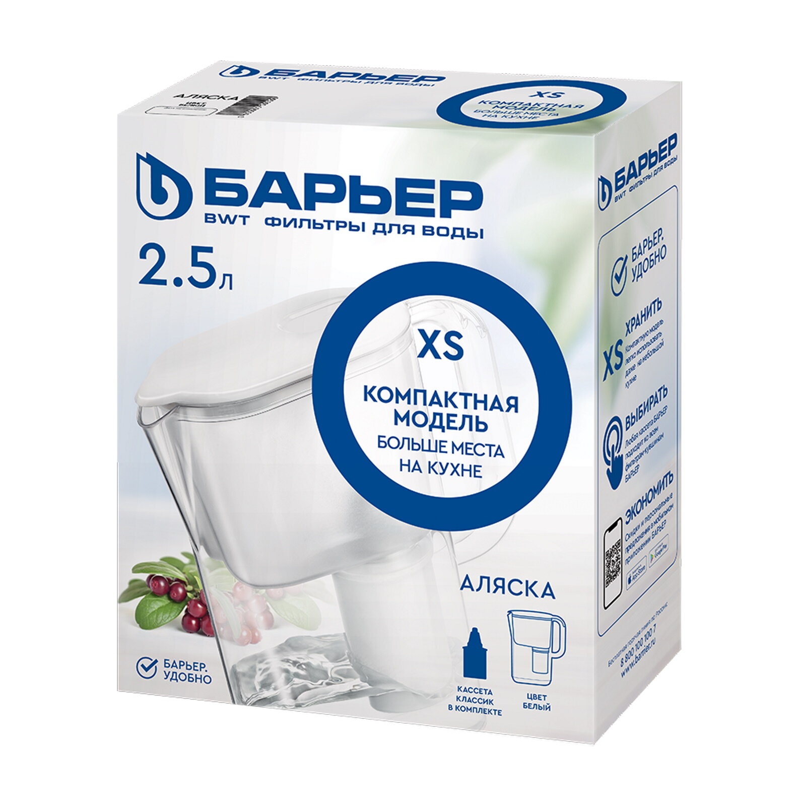 Фильтр-кувшин Барьер аляска белый XS 2.5 л интересное: