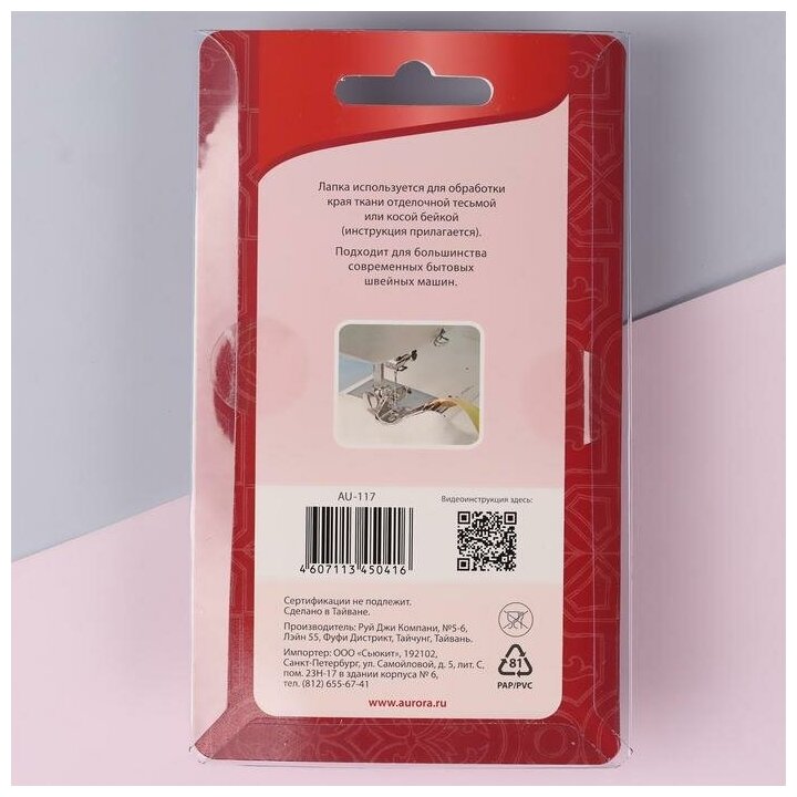 Лапка для швейной машинки Aurora для пришивания тесьмы, в блистере (AU-131)