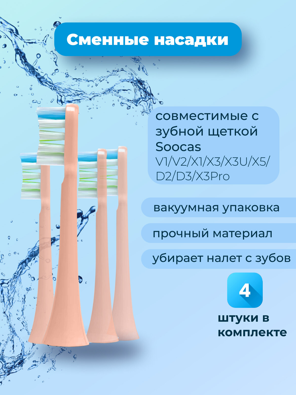 Купить Сменные насадки для зубной щетки Xiaomi Soocas V1/V2/X1/X3/X3U/X5/D2/D3/X3Pro розовый, 4шт