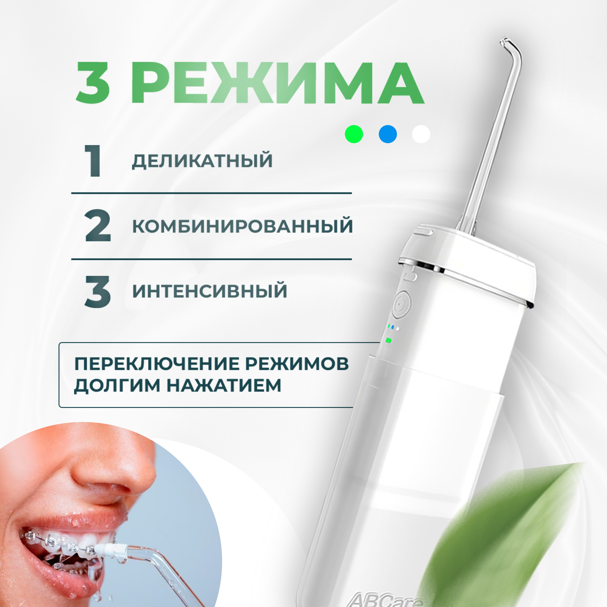 Ирригатор для зубов, ABCare, CIR-55, белый, 4 сменные насадки, поворот насадок на 360 // портативный ирригатор для полости рта, как ирригатор xiaomi интересное: