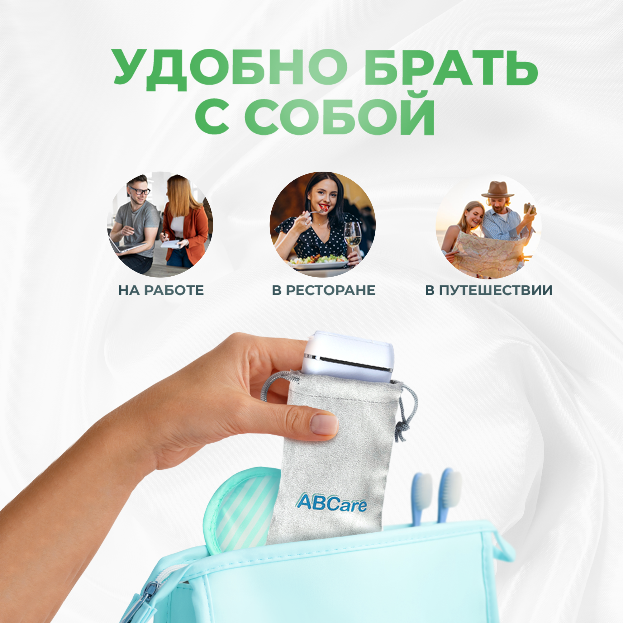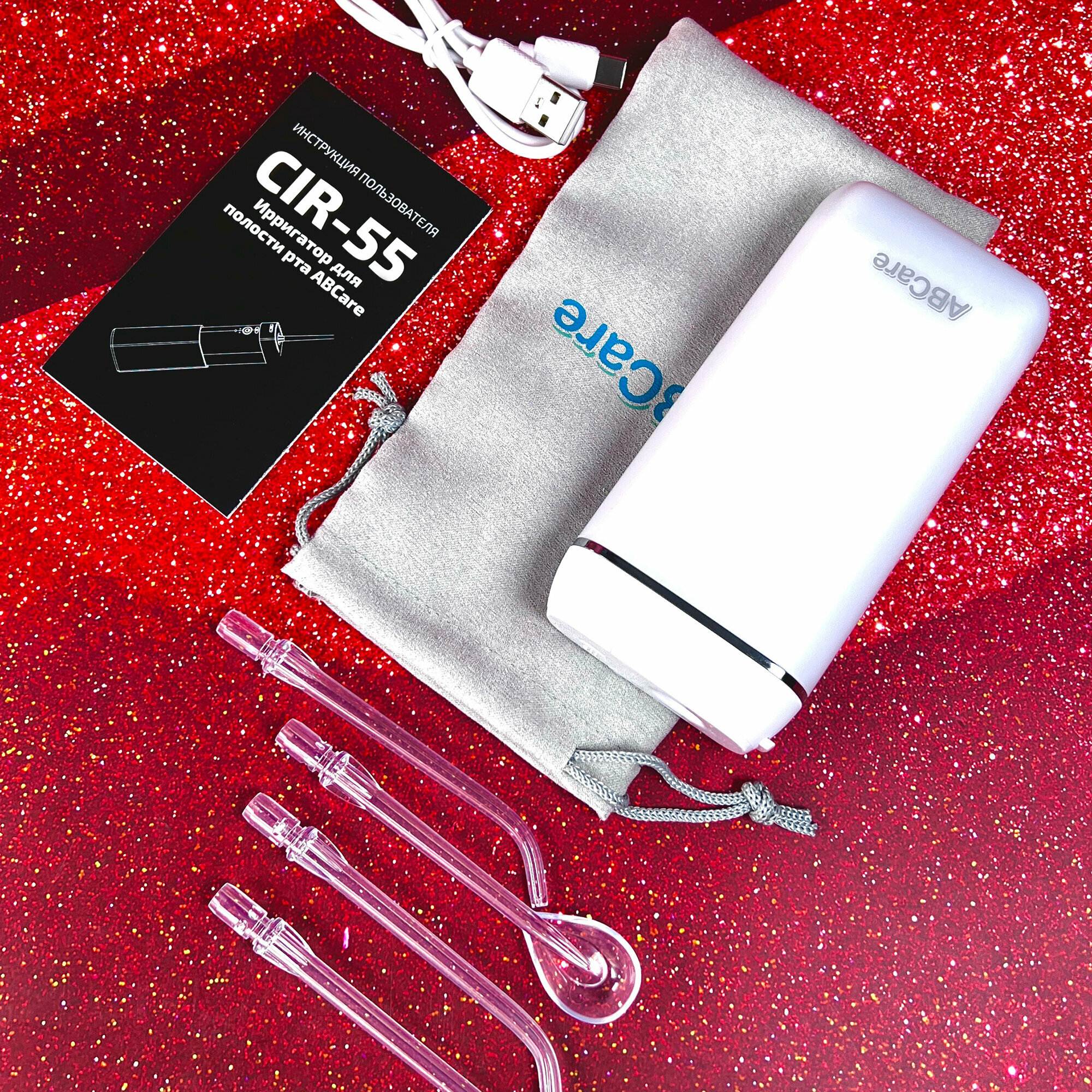 Ирригатор портативный, ABCare, CIR-55, 4 сменные насадки, ирригатор для зубов, ирригатор, ирригатор xiaomi, ирригатор для зубов портативный, белый
