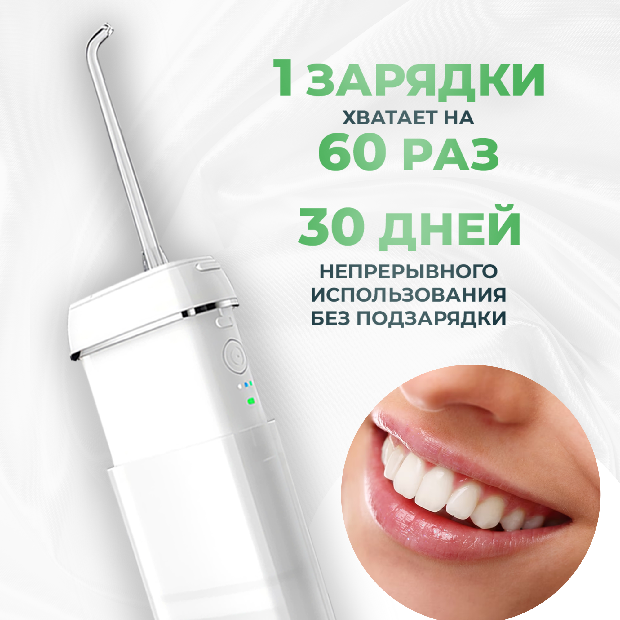 Ирригатор портативный, 4 сменные насадки, ирригатор для зубов, ирригатор, ирригатор xiaomi, ирригатор портативный, белый