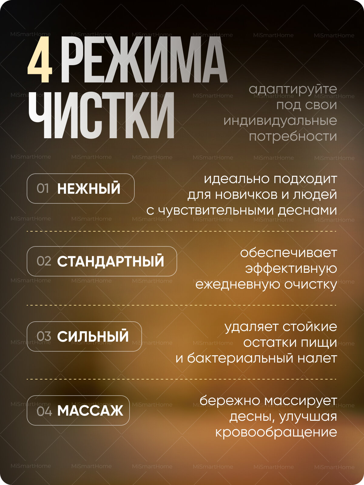 | Число режимов/регулировок ирригатора | 4 |