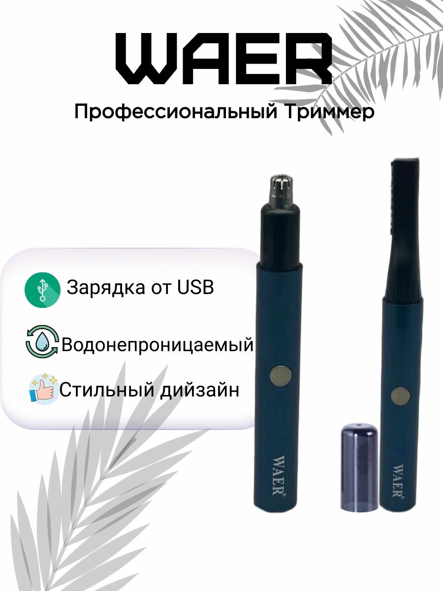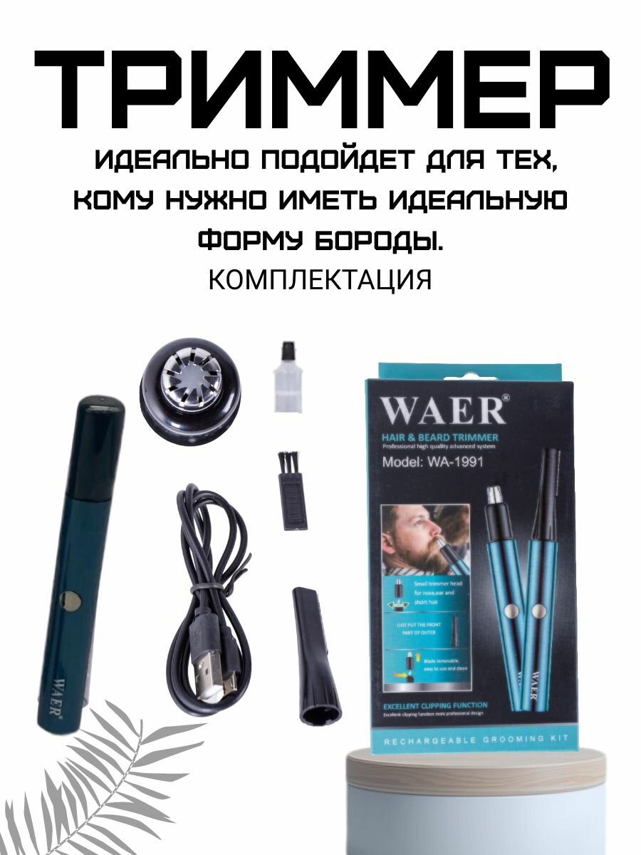 Триммер 2 в1 WAER WA-1991 для волос, бороды, ушей и носа. Перезаряжаемый набор для бритья