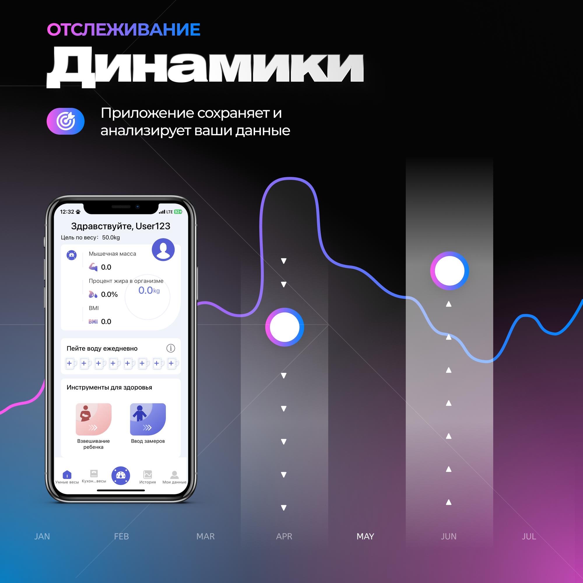 | Дополнительные функции | определение доли воды / определение доли жировой ткани / определение доли костной ткани / определение доли мышечной ткани / память / расчет ИМТ (BMI) |