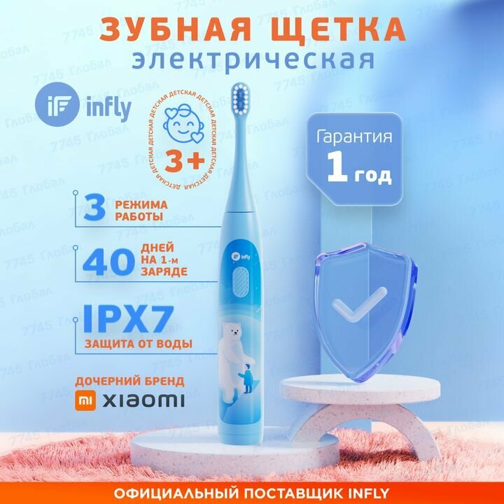 Купить Зубная щетка электрическая детская INFLY Kids Electric Toothbrush T04B Blue (T20040BIN)
