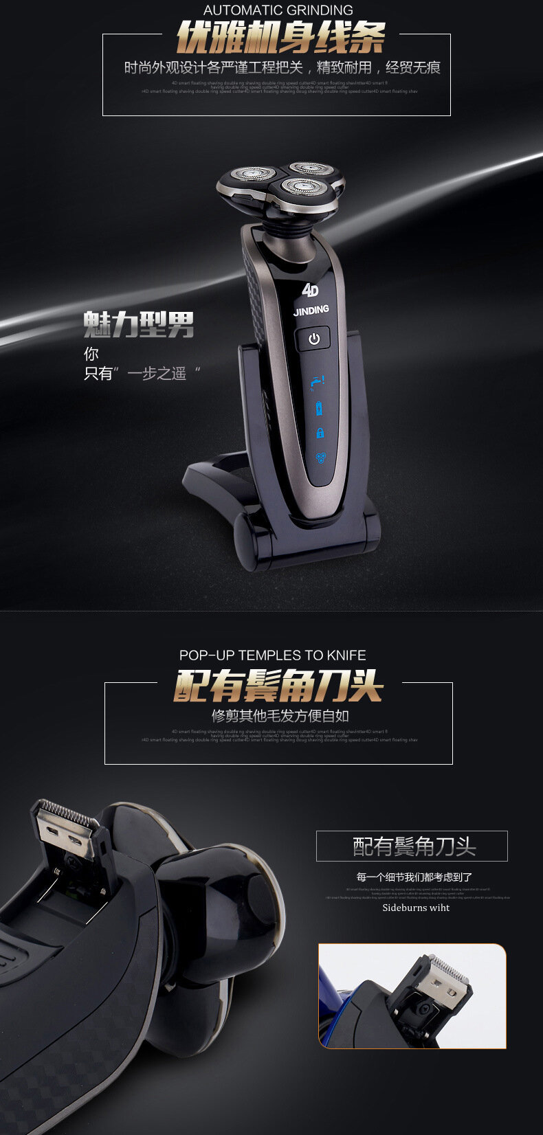 Электробритва Jinding RQ8508C, многофункциональная, с гальваническим покрытием, серая интересное: