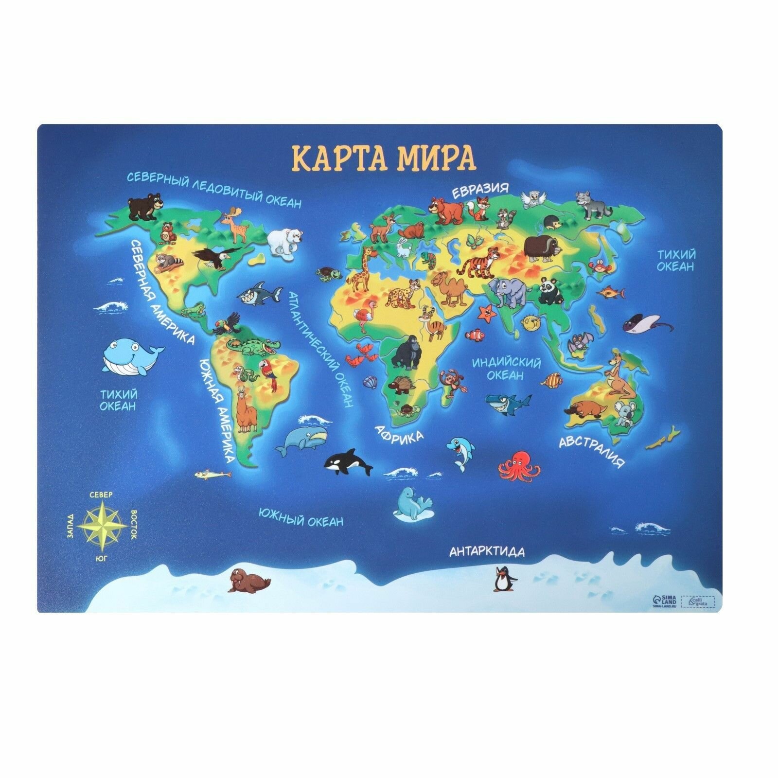 Купить Накладка на стол пластиковая А4 (339 х 224 мм) 500 мкм, Обучающая, Calligrata Карта мира