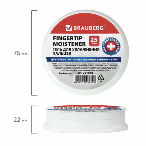Гель для увлажнения пальцев антибактериальный BRAUBERG, 25 г, Россия, 221040, 4 штуки интересное: