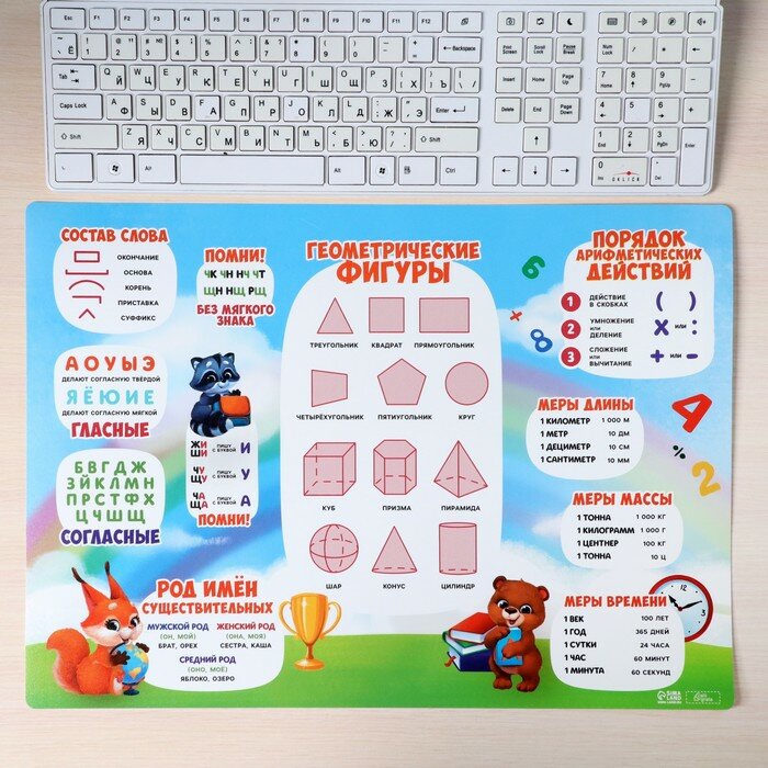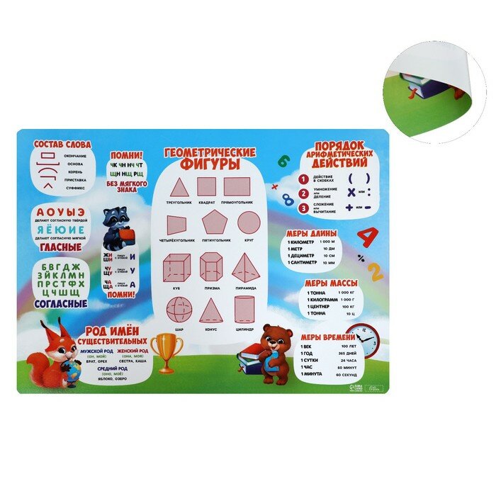 Накладка на стол пластиковая А3 (460 х 330 мм), Calligrata, "Русский язык/ Математика" 430 мкм, обучающая, 2 штуки интересное:
