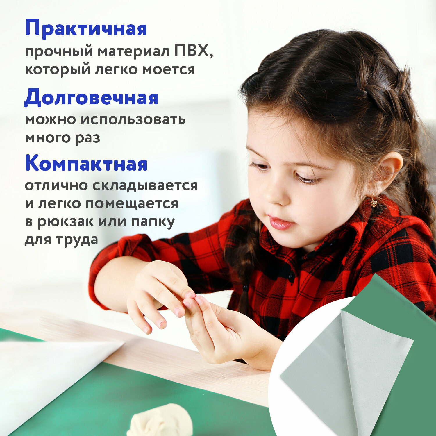 Клеёнка настольная пифагор для уроков труда, ПВХ, зеленая, 69х40 см, 227057, в комплекте 2шт интересное: