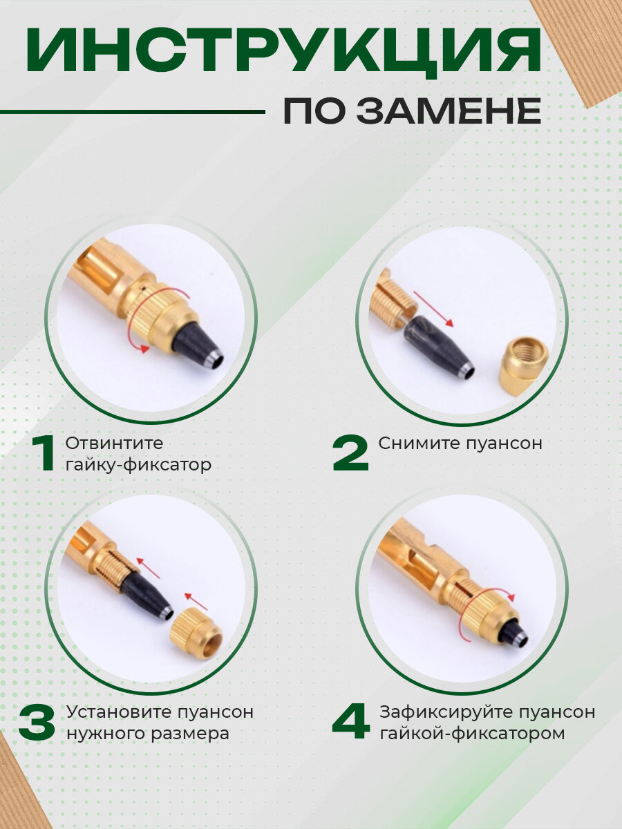 | Дополнительная информация | Дырокол для ремней с 6 насадками |