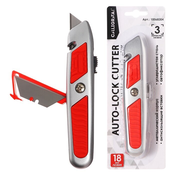 Купить Нож универсальный трапециевидный 18мм, фиксатор, 3 штуки запасных лезвий, Zinc-alloy, TOP