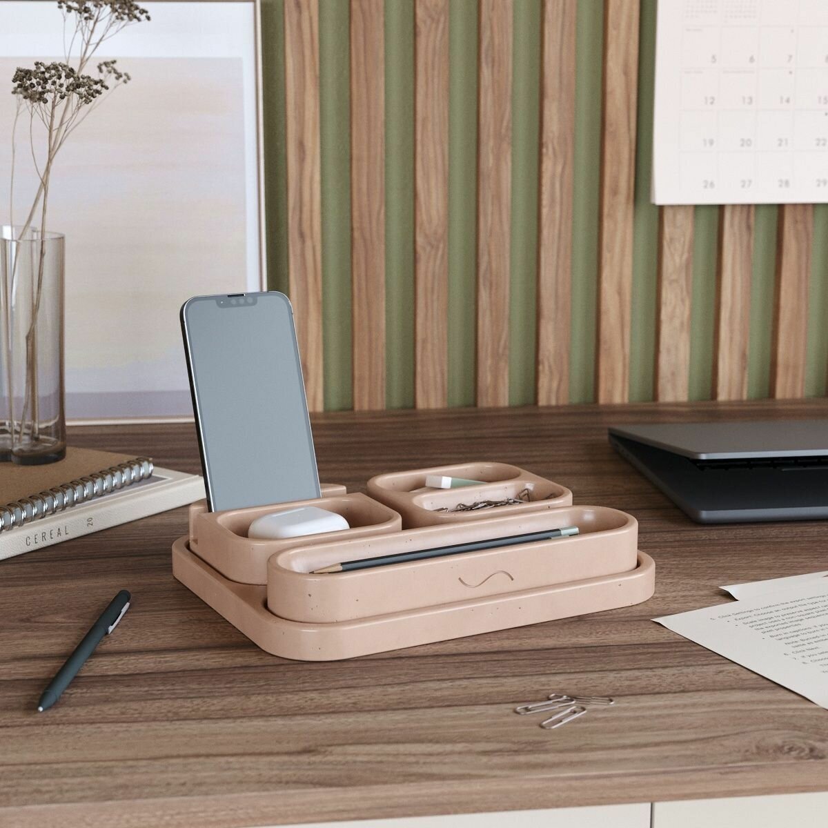 Канцелярский набор для офиса Oliver (Подставка, органайзер для ручек, визитница, органайзер для мелочей), бетон, розовый матовый