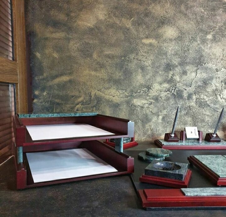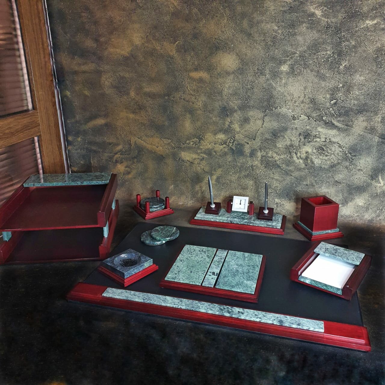 Набор настольный из дерева "BESTAR" 8 предметов (красное дерево/мрамор) интересное:
